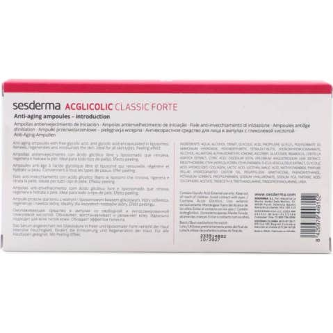 Sesderma Acglicolic Classic Forte Ampollas Antienvejecimiento 10x1,5ml es un sérum facial en formato ampollas. Con acción renovadora de efecto peeling inmediato, que hidrata y renueva la piel en profundidad.
