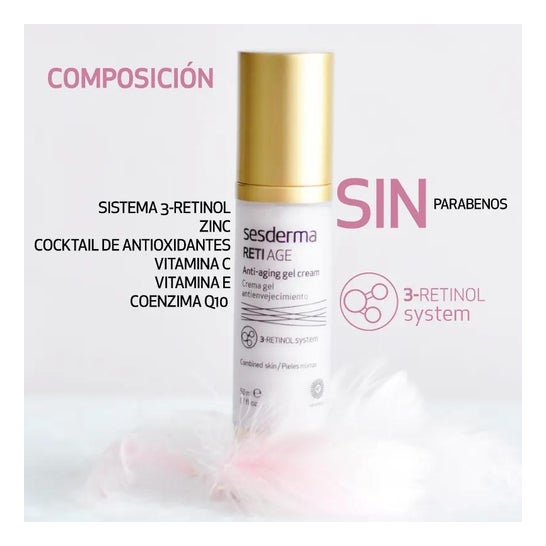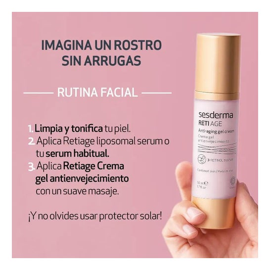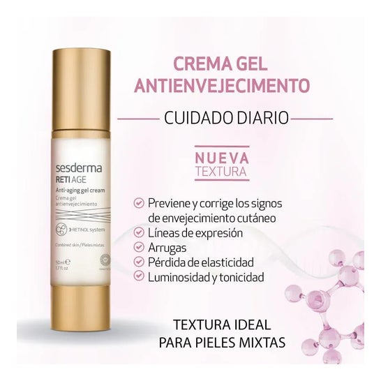 Sesderma Retiage Crema Gel Antienvejecimiento 50ml es una crema antiedad que ayuda a prevenir y a corregir la aparición de signos de envejecimiento en el rostro, como las líneas de expresión, perdida de elasticidad, luminosidad y tonicidad.