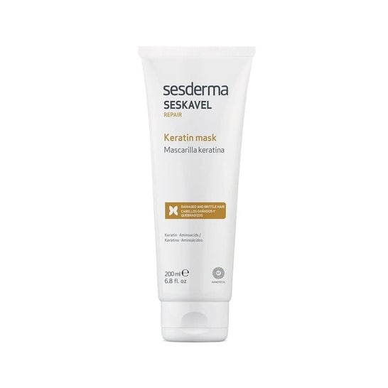 Sesderma Seskavel Repair Mascarilla Keratina 200ml es un tratamiento ideal para cabellos secos, deshidratados o teñidos. Proporciona una reparación intensa e inmediata del cabello de la raíz a las puntas.