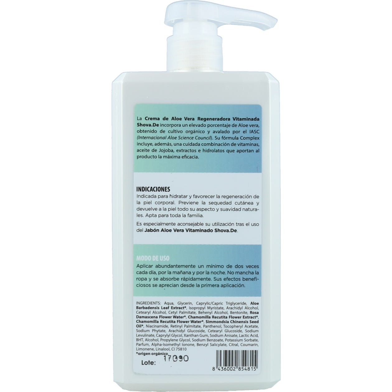 Emulsión corporal elaborada a base de aloe vera 100% natural y orgánico. Tiene una acción hidratante y suavizante, ayuda a mantener la piel equilibrada y sana. Penetra en la piel expulsando bacterias y depósitos de grasa que tapan los poros. Contiene minerales, vitaminas, aminoácidos y enzimas nutrientes que estimulan la reproducción de nuevas células. Es rico en polisacáridos mucilaginosos, minerales, saponinas, aminoácidos, vitaminas A, B y C y oligoelementos. Adecuado para tratar irritaciones solares y para pieles secas y deshidratadas. Enriquecida con aceite de jojoba, manzanilla y niacinamida. Apto para todo tipo de pieles.