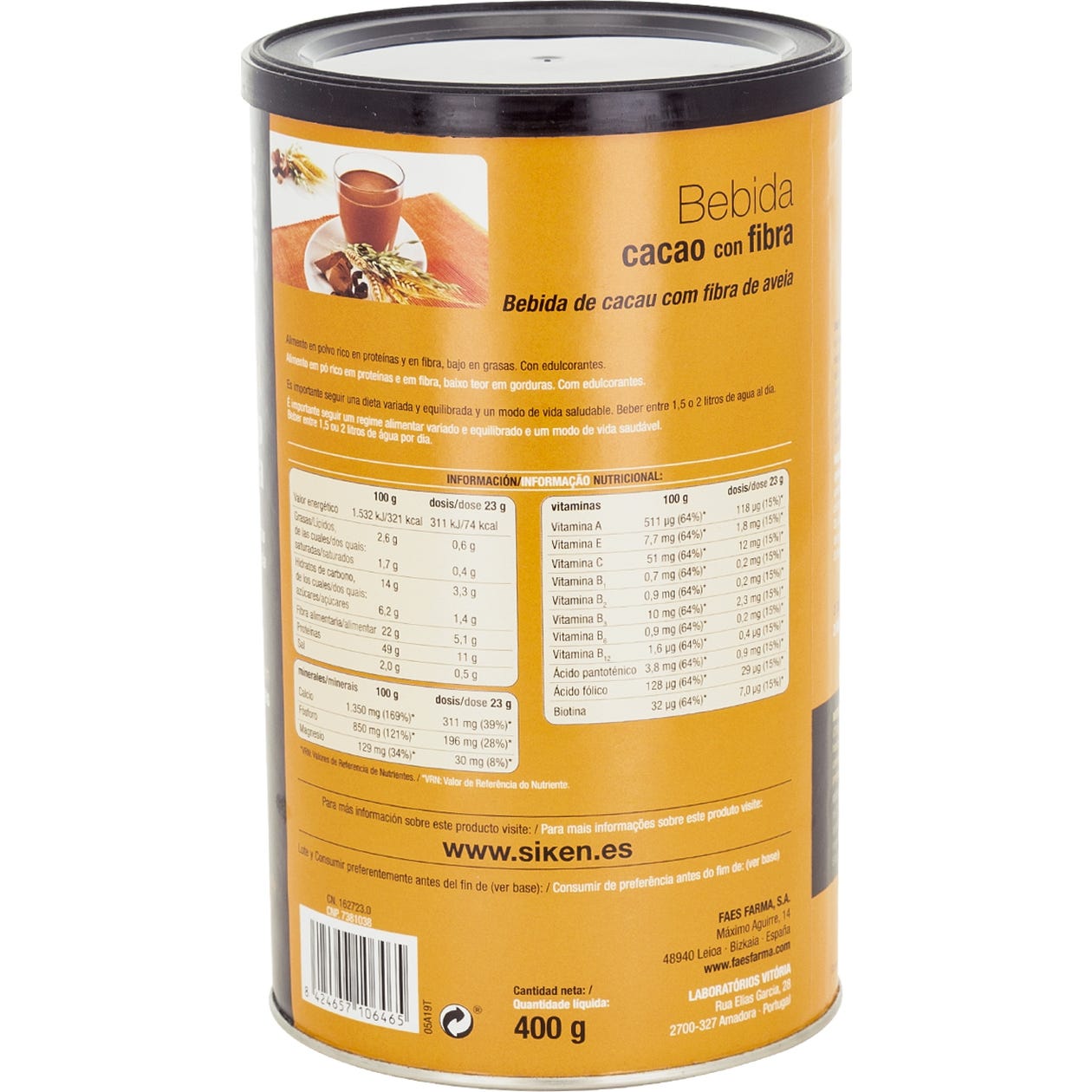 Siken® Diet Control de Peso Bebida de Cacao con Fibra 400g es una bebida que aporta proteínas y fibras de sabor chocolate.