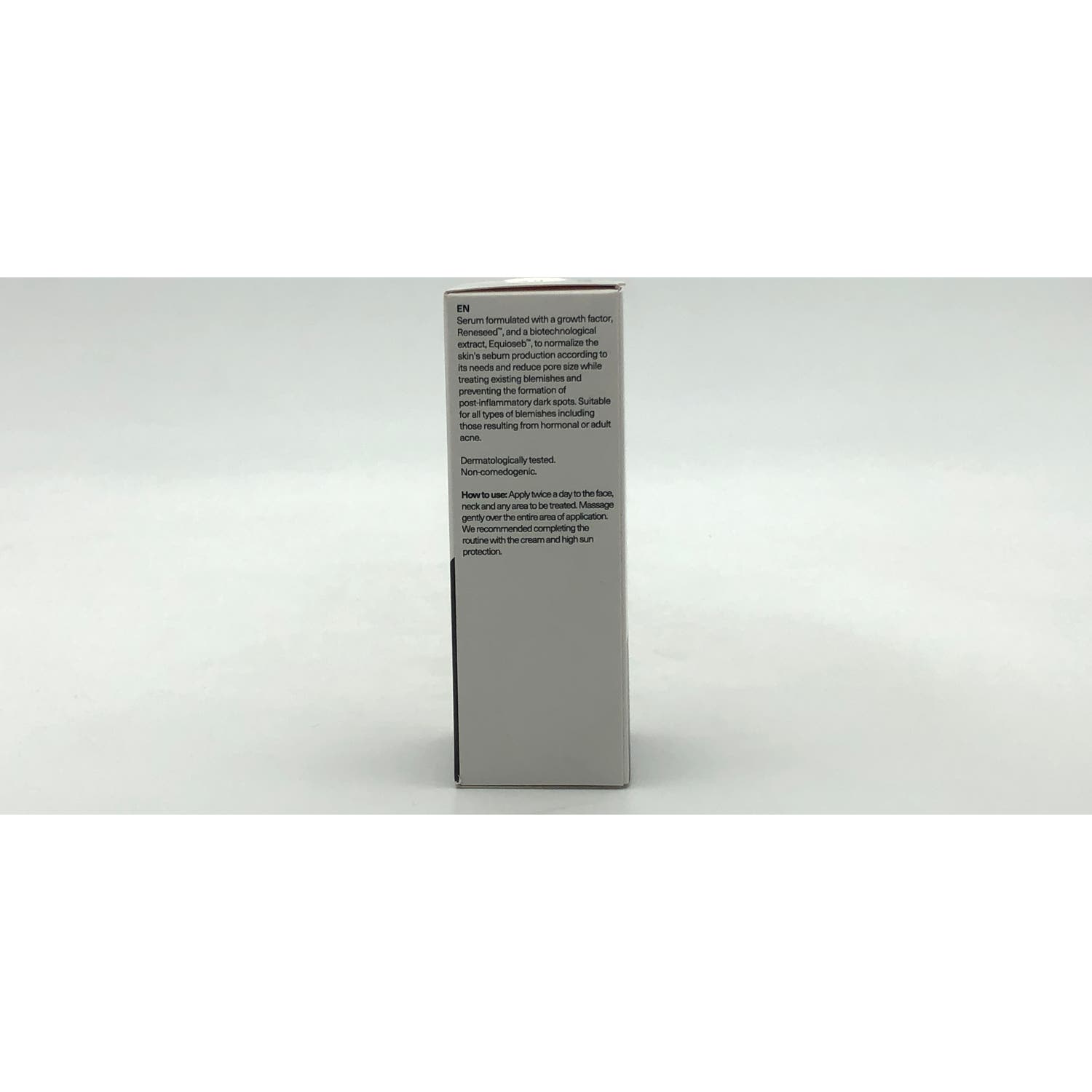 Sérum que contribuye a iluminar el tono del rostro y a mejorar la hidratación de la piel. Formulado a base de pantenol, extracto de rodiola, pantenol, un factor de crecimiento llamado Reneseed™ y Equioseb. Ayuda a eliminar las impurezas de los poros y a reducir las imperfecciones de la epidermis, mientras favorece la prevención de las manchas del acné. Adecuado para todo tipo de pieles. Dermatológicamente testado.