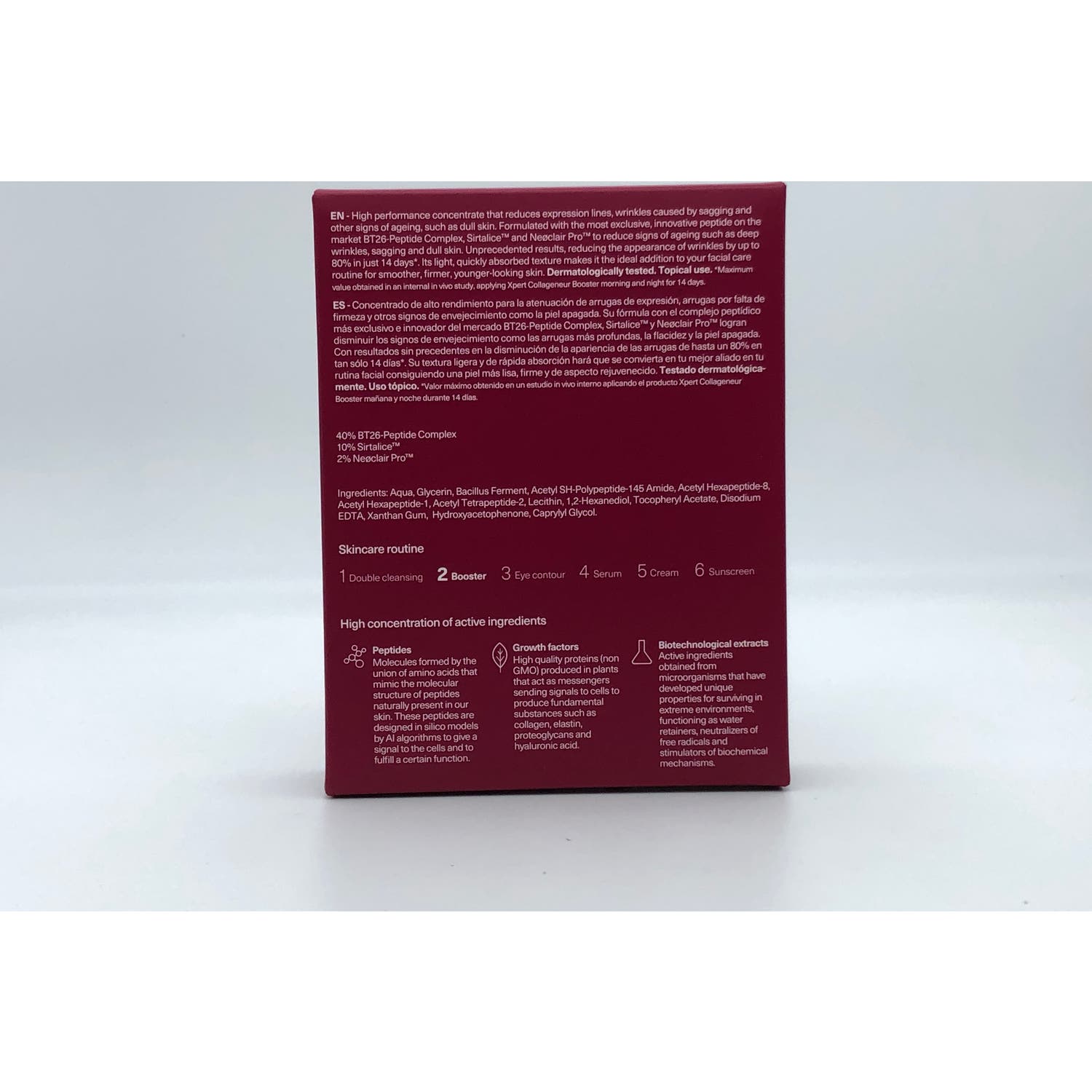 Singuladerm Xpert Collageneur Booster Tratamiento Intensivo 2x10ml es un tratamiento facial concentrado en práctico formato de ampollas. Formulado a base de un complejo péptido llamado B-Tox Peptide Complex, Sirtalice® y Neøclair Pro™. Ayuda a la reposición natural del colágeno y a reducir la degradación de las fibras, alisando la apariencia de las arrugas.