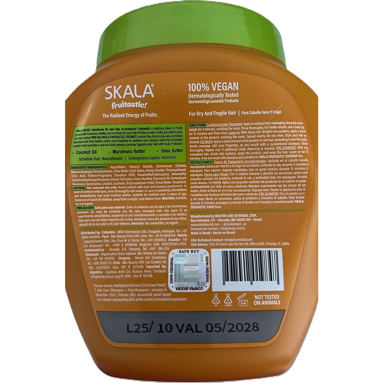 Skala Frutástica Coco 2 En 1 Crema de Tratamiento 1000ml es una solución ideal para quienes buscan añadir un toque divertido y frutal a su rutina de cuidado del cabello. Esta crema está formulada con Aceite de Coco, conocido por su capacidad de nutrición intensa, y combina Manteca de Murumuru y Manteca de Karité, ingredientes que se complementan para revitalizar el cabello de forma efectiva. Además, su fragancia a coco proporciona una experiencia sensorial única.