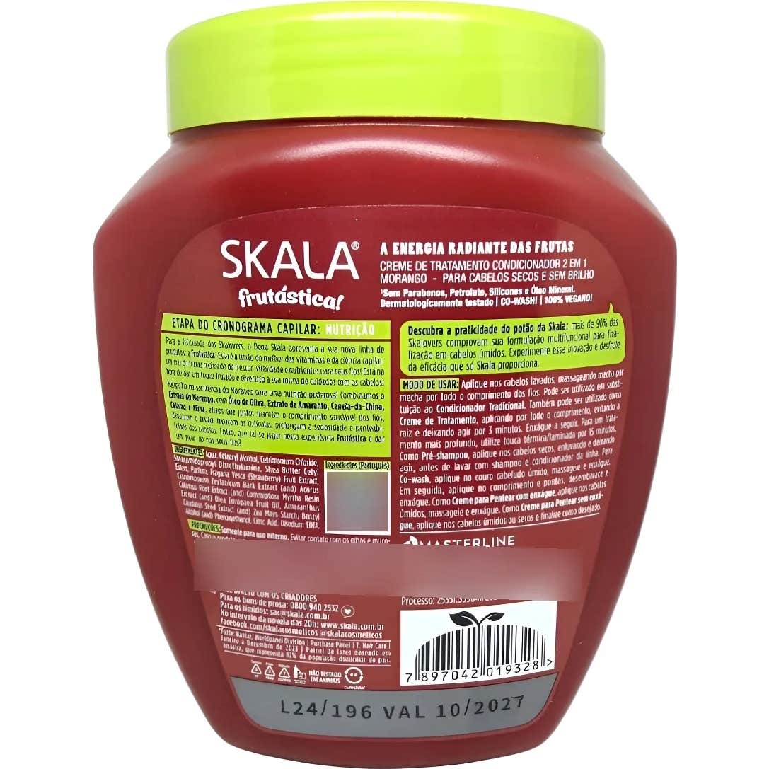 Skala Frutástica Morango Crema de Tratamiento 1000ml es un producto diseñado para aportar un toque frutal y divertido a la rutina de cuidado del cabello. Este tratamiento destaca por su formulación a base de Extracto de Fresa, que proporciona una nutrición intensa, ideal para restaurar el brillo y reparar las cutículas del cabello, lo que favorece su suavidad y manejabilidad.