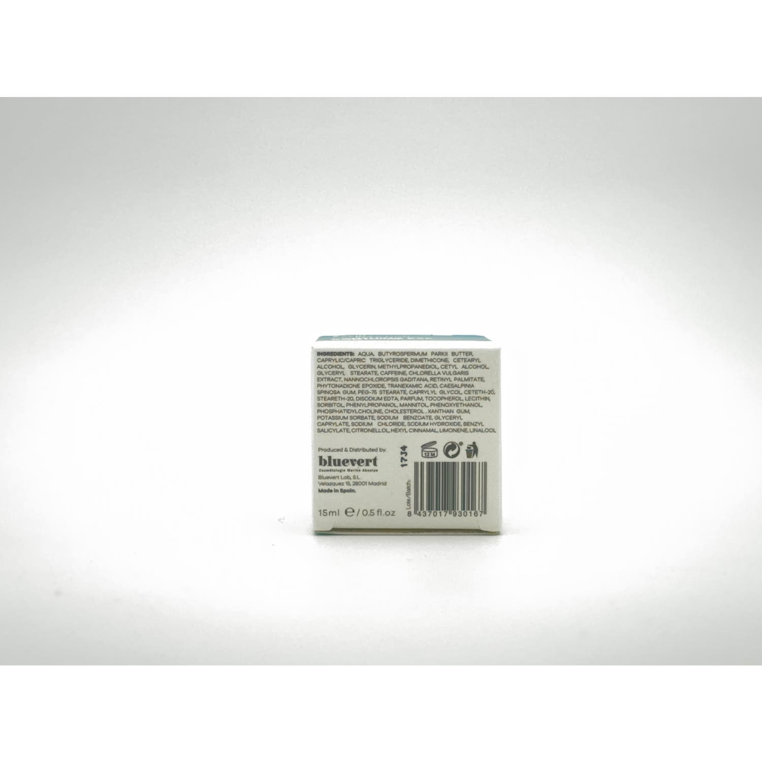 Aqua, Butyrospermum Parkii Butter, Caprylic/capric Triglyceride, Dimethicone, Cetearyl Alcohol, Glycerin, Methylpropanediol, Cetyl Alcohol, Glyceryl Stearate, Caffeine, Chlorella vulgaris Extract, Microchloropsis gaditana, Retinyl Palmitate, Phytonadione Epoxide, Tranexamic Acid, Caesalpinia Spinosa Gum, PEG-75 Stearate, Caprylyl Glycol, Ceteth-20, Steareth-20, Disodium EDTA, Parfum, Tocopherol, Lecithin, Sorbitol, Phenylpropanol, Mannitol, Phenoxyethanol, Phospatidylcoline, Cholesterol, Xantan Gum, Potassium Sorbate, Sodium Benzoate, Glyceryl Caprylate, Sodium Chloride, Sodium Hydroxide, Benzyl Salicylate, Citronellol, Hexyl Cinnamal, Limonene, Linalool.