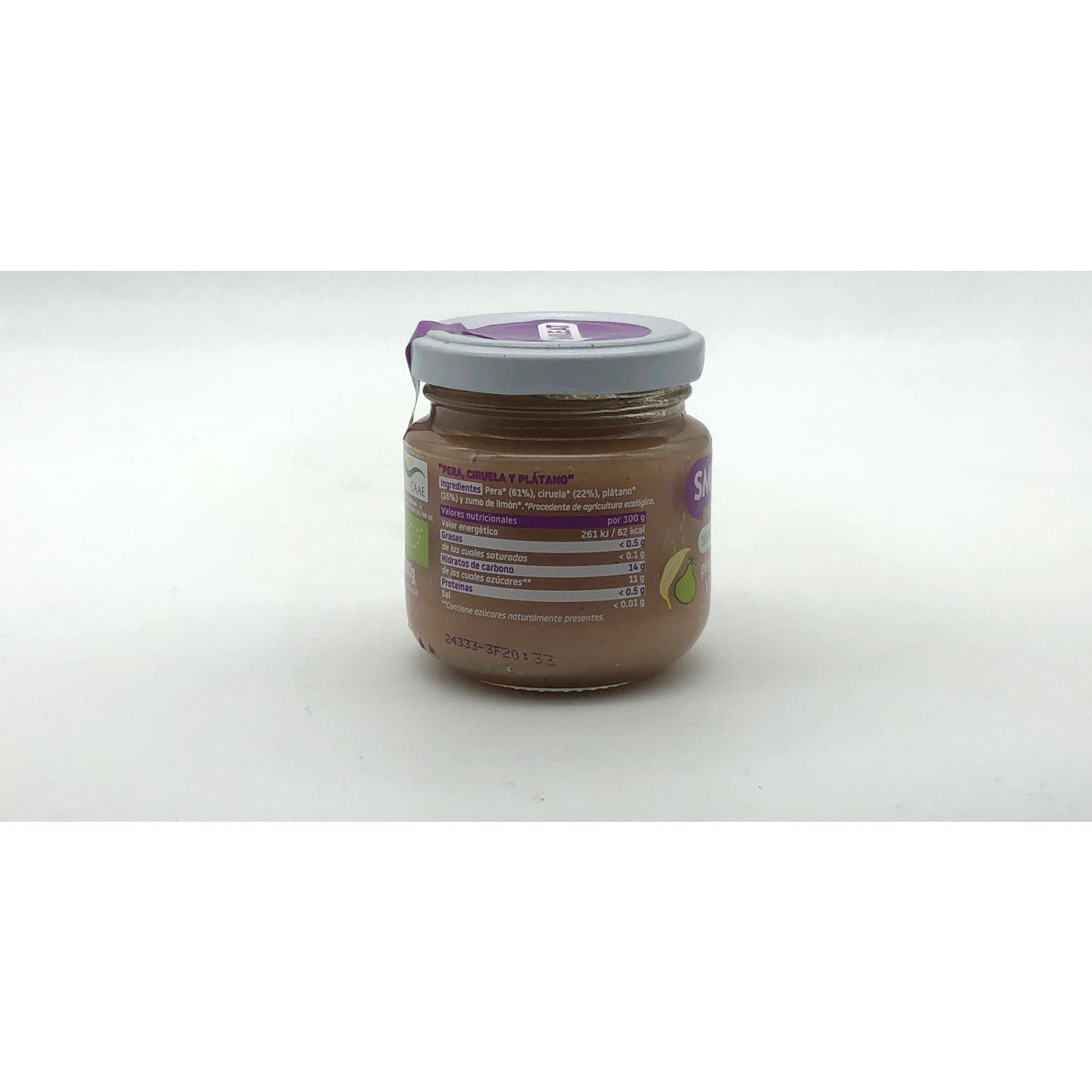 Smileat Tarrito De Tres Frutas 100% Ecológico 130g es un puré dulce para bebés elaborado con una combinación perfecta de productos naturales y ecológicos, sin azúcar ni sales añadidas. Este alimento equilibrado y natural está diseñado para que los más pequeños comiencen a alimentarse de forma saludable y puedan crecer fuertes. Contiene vitaminas, potasio, calcio y otros nutrientes esenciales para el desarrollo de los bebés y una dieta equilibrada. El tarrito de 130g está elaborado con tres frutas: plátano, pera y naranja, que aportan sabores dulces, abundante agua y nutrientes esenciales. Es apto para bebés a partir de los 4 meses de edad y no contiene conservantes ni espesantes. Además, está libre de gluten, plv y huevo para evitar reacciones alérgicas. Smileat se preocupa por el medio ambiente y la sostenibilidad, utilizando envases responsables y materias primas ecológicas. Este producto revoluciona la alimentación infantil con ingredientes de temporada y ecológicos. No contiene sal ni azúcar añadidos, conservantes ni espesantes. Es ideal para bebés a partir de los 4 meses de edad y tiene un sabor a tres frutas. El tarrito de 130g está compuesto por pera, zumo de naranja, plátano y zumo de limón procedentes de agricultura ecológica. Para su consumo, solo es necesario abrir el frasco y remover con una cuchara, sin necesidad de añadir azúcar. Tiene una caducidad de hasta 24 meses.
