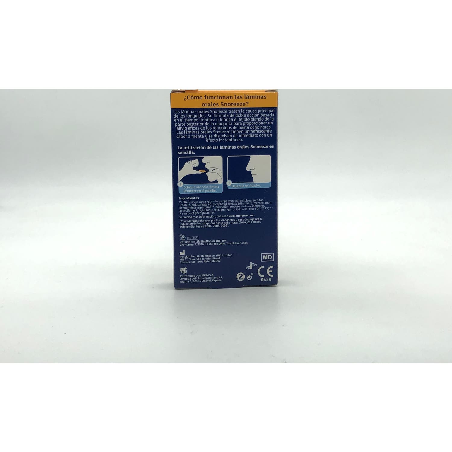 Su formato se basa en láminas de rápida absorción que, colocadas en el paladar, lubrican activamente los tejidos blandos de garganta y laringe, previniendo que se produzca el ronquido.