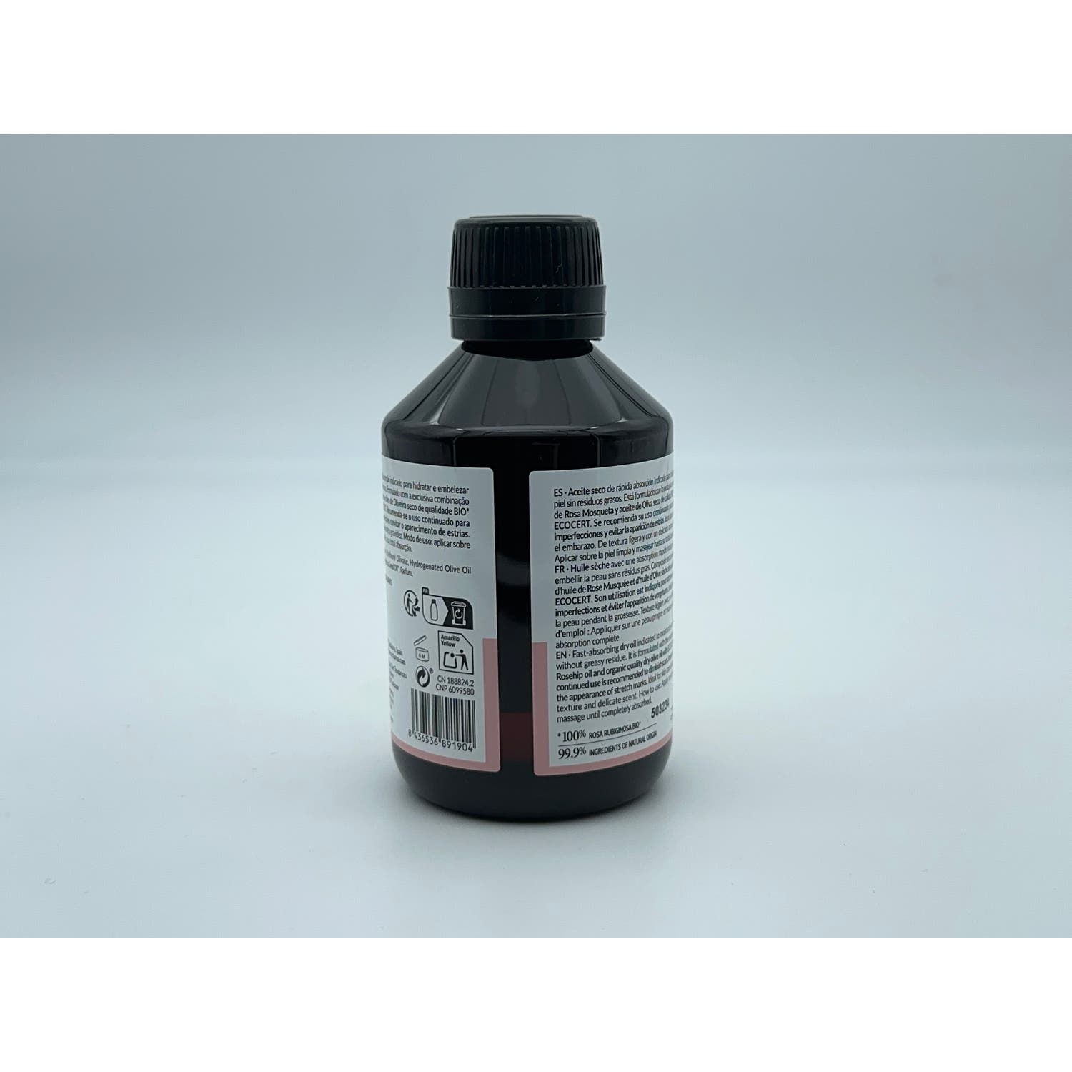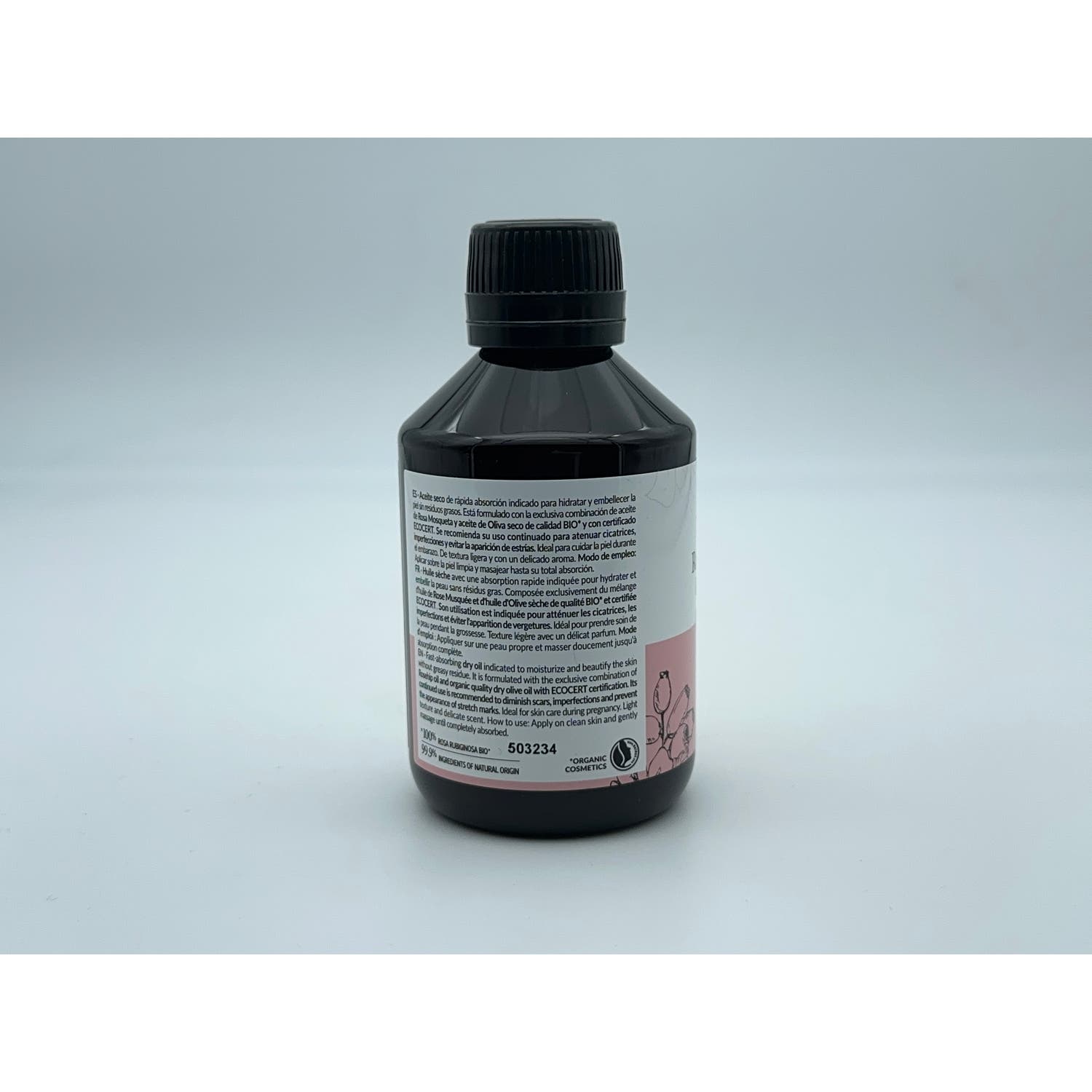 - Formulado con la combinación de aceite de rosa mosqueta y aceite de oliva seco de calidad BIO y con certificado ECOCERT.