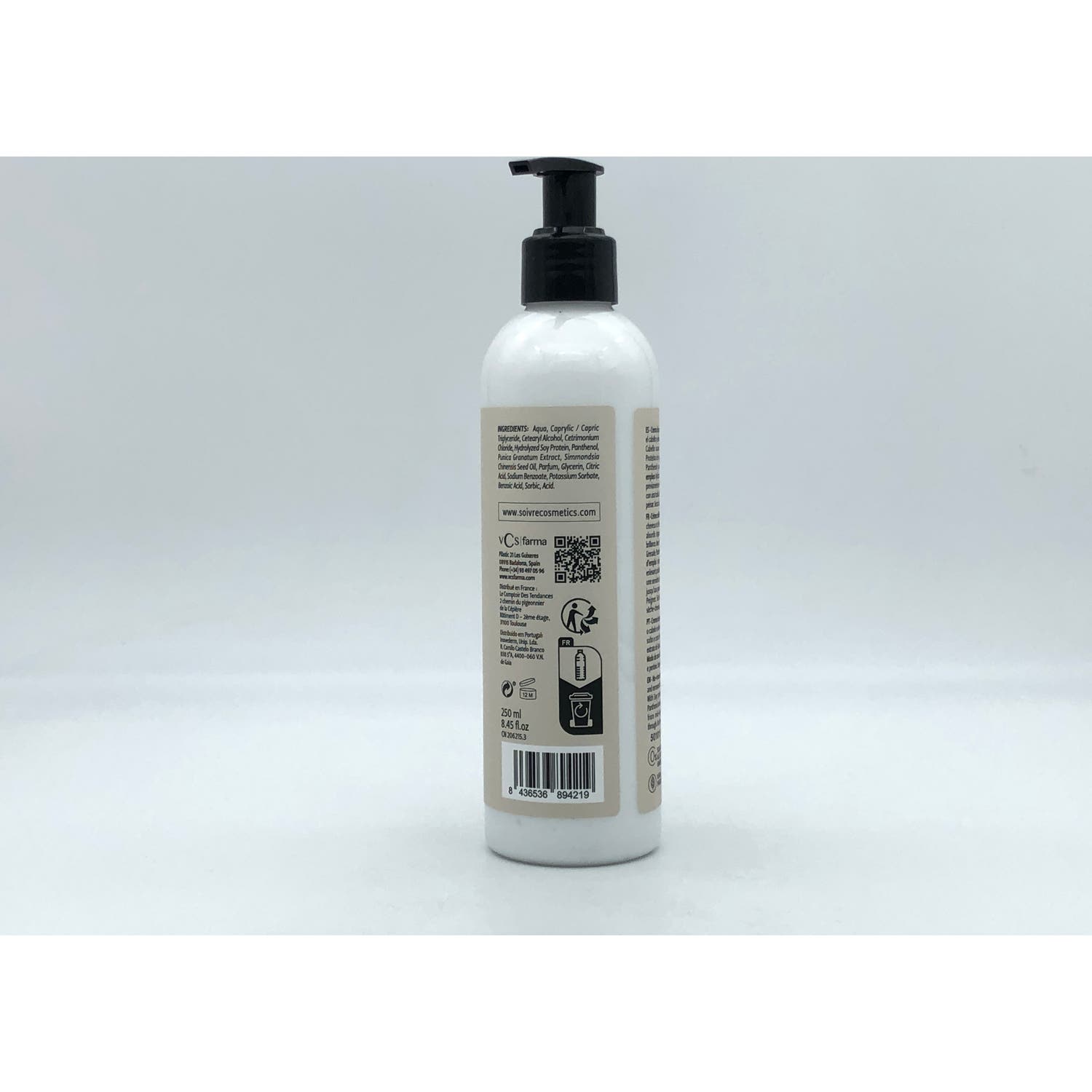 AQUA, CAPRYLIC / CAPRIC TRIGLYCERIDE, CETEARYL ALCOHOL, CETRIMONIUM CHLORIDE, HYDROLYZED SOY PROTEIN, PANTHENOL, PUNICA GRANATUM EXTRACT, SIMMONDSIA CHINENSIS SEED OIL, PARFUM, GLYCERIN, CITRIC ACID, SODIUM BENZOATE, POTASSIUM SORBATE, BENZOIC ACID, SORBIC, ACID.
