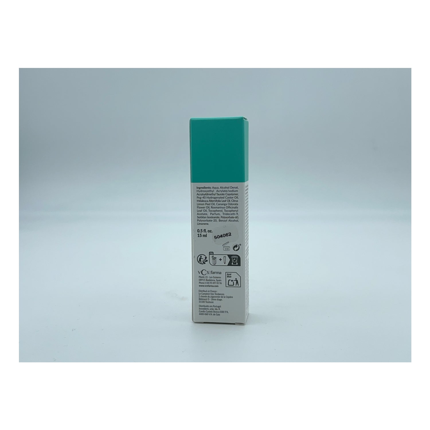 Aqua, alcohol denat, hydroxyethyl acrylate/sodium acryloyldimethyl taurate copolymer, tocopheryl acetate, melaleuca alternifolia leaf oil, citrus limon peel oil, cananga odorata flower oil, rosmarinus officinalis leaf oil, tocopherol, triethanolamine, carbomer, parfum, sorbitan isostearate, polysorbate-60, benzyl alcohol, benzyl benzoate, benzyl salicylate, citral, farnesol, geraniol, limonene, linalool.