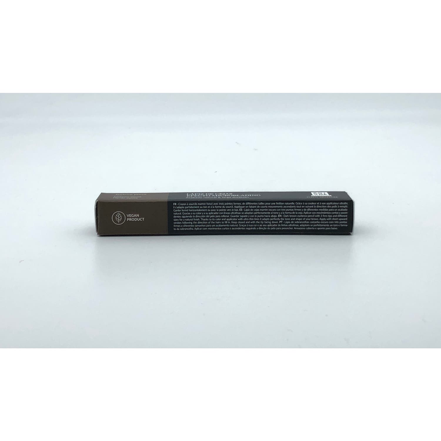 Lápiz de cejas con una fórmula muy pigmentada en color marrón oscuro. Contribuye a dibujar y a rellenar el pelo faltante en la ceja, mientras favorece el refuerzo de la fibra capilar. Además, contiene un cepillo aplicador con tres puntas firmes y cerdas de diferentes medidas, que facilita el empleo y aporta un acabado natural. Testado dermatológicamente. Apto para veganos. Adecuado para todo tipo de pieles.