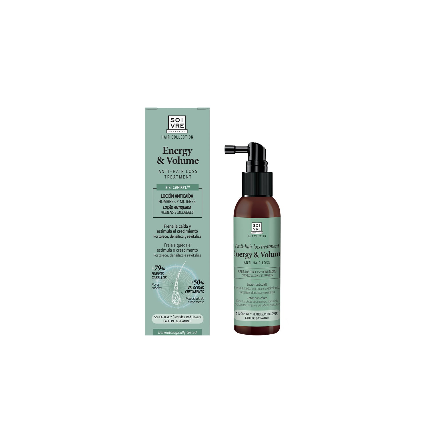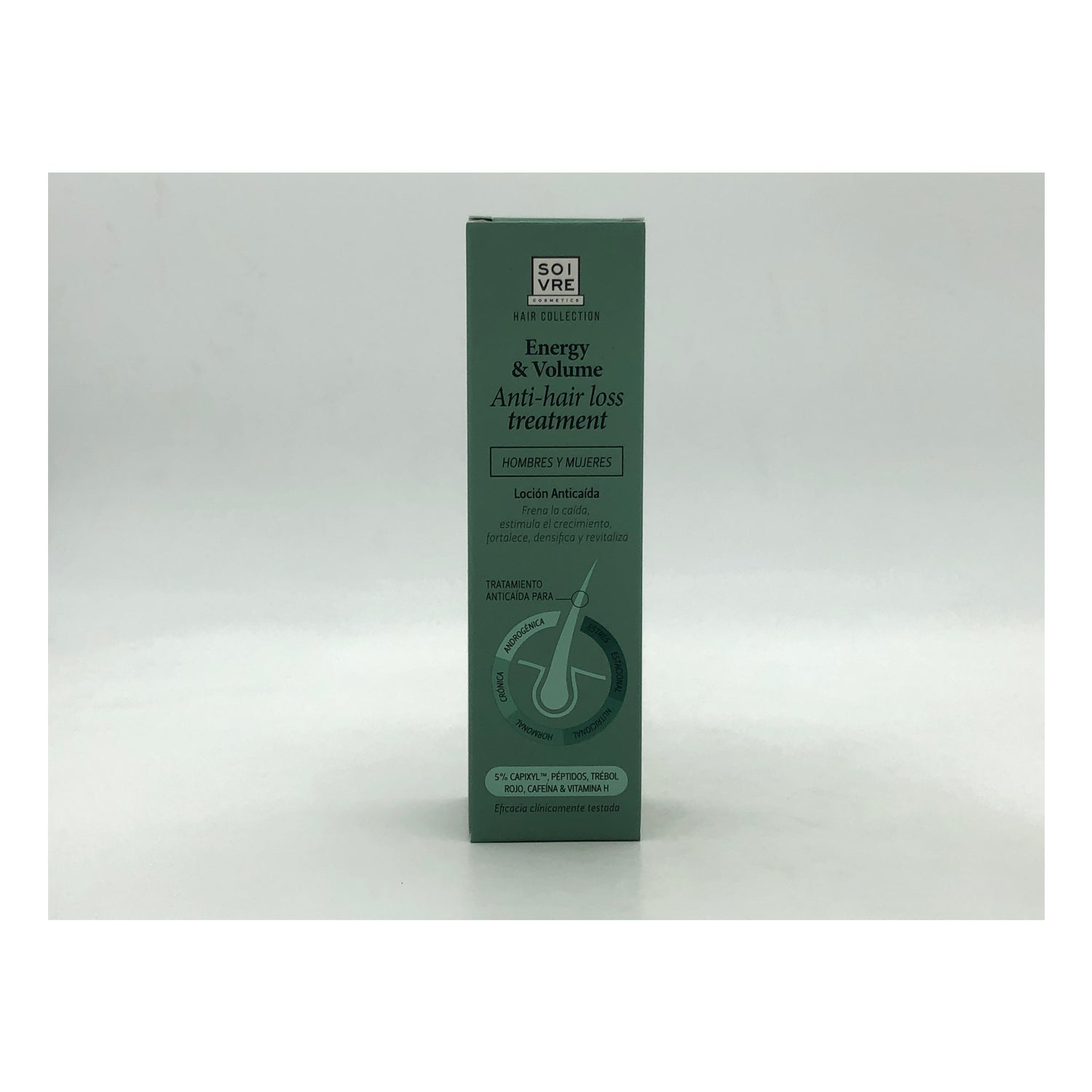Loción anticaída de Soivre. Producto de cuidado capilar que contribuye a prevenir y detener la caída del cabello, aumentando la densidad y estimulando el crecimiento de cabellos nuevos. Asimismo, tiene un efecto directo sobre los folículos pilosos, incrementando la vitalidad y tamaño de las fibras capilares, y aportando una mayor sensación de volumen.