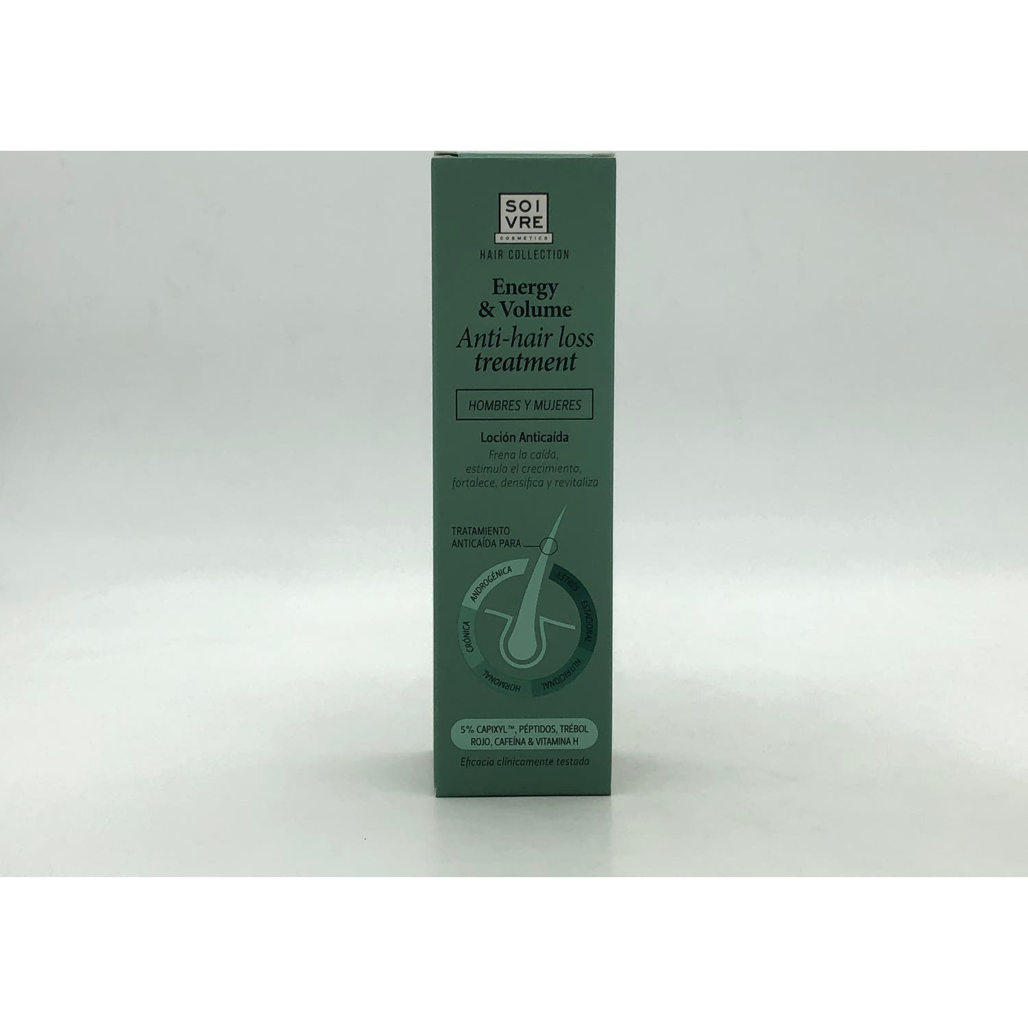Loción anticaída de Soivre. Producto de cuidado capilar que contribuye a prevenir y detener la caída del cabello, aumentando la densidad y estimulando el crecimiento de cabellos nuevos. Asimismo, tiene un efecto directo sobre los folículos pilosos, incrementando la vitalidad y tamaño de las fibras capilares, y aportando una mayor sensación de volumen.