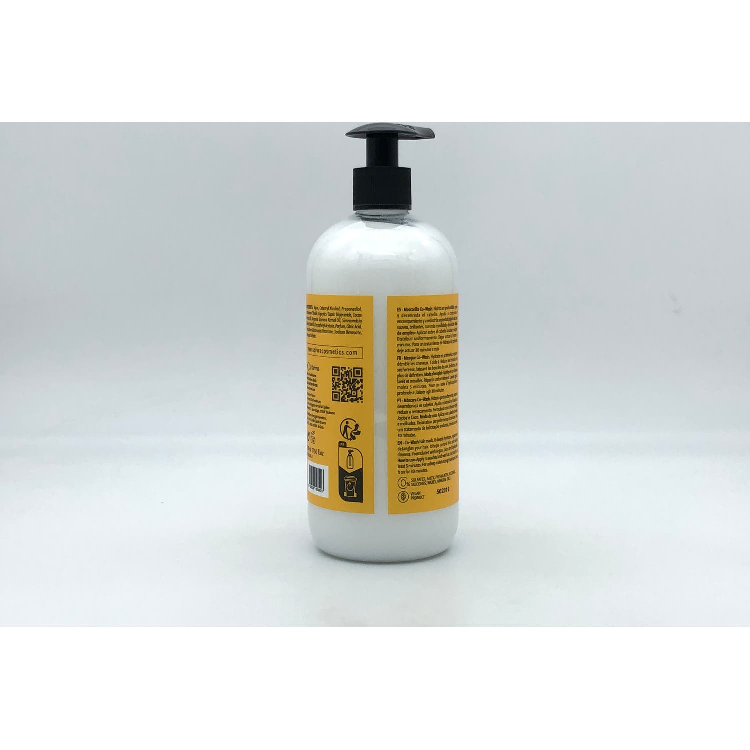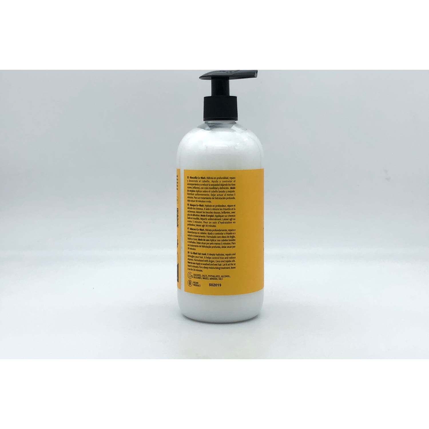 ACEITE DE JOJOBA, ARGÁN Y COCO. SIN SULFATOS, 0% FTALATOS, 0% SALES, 0% ALCOHOLES, 0% SILICONAS, 0% ACEITES MINERALES, 0% CERAS, 0% PARABENOS.