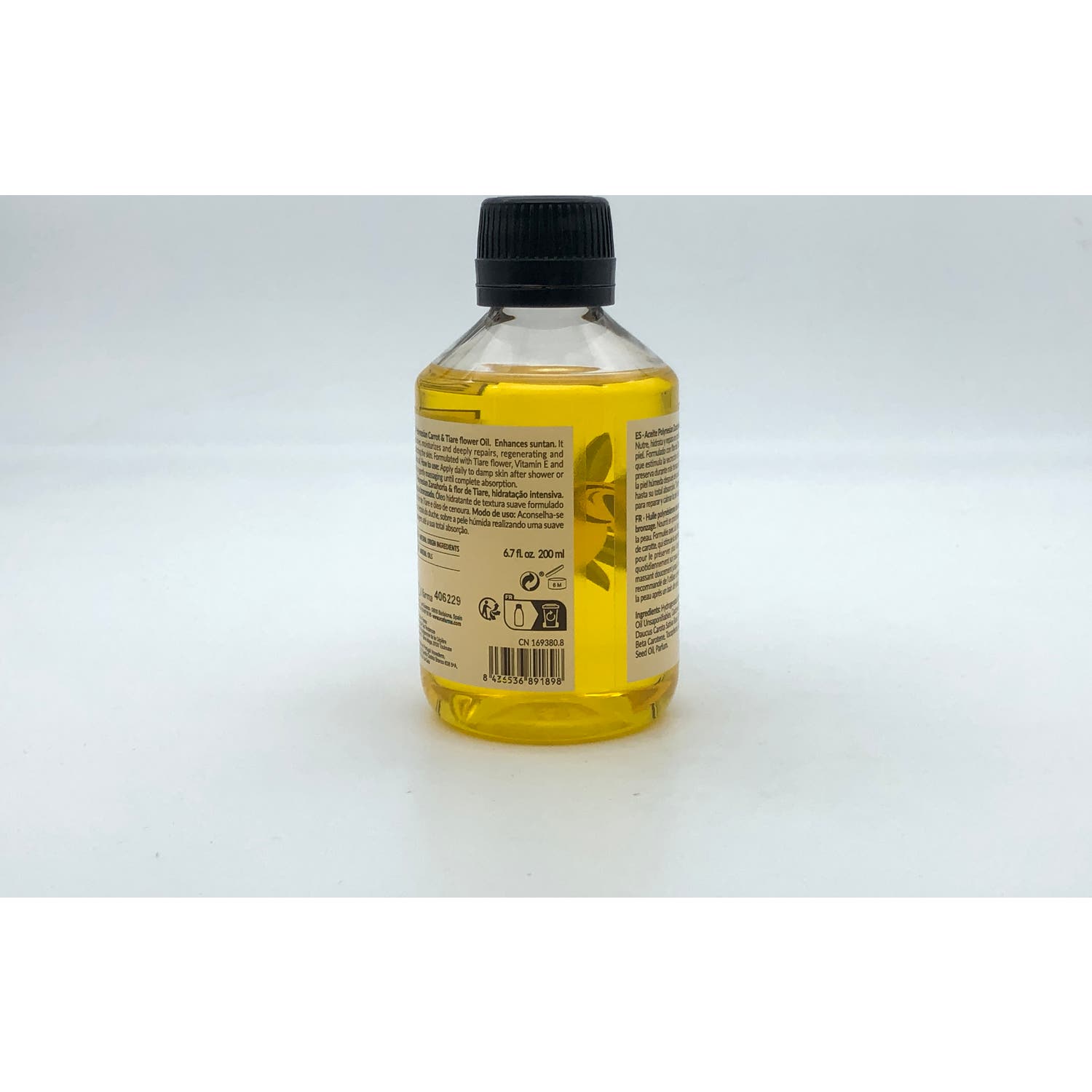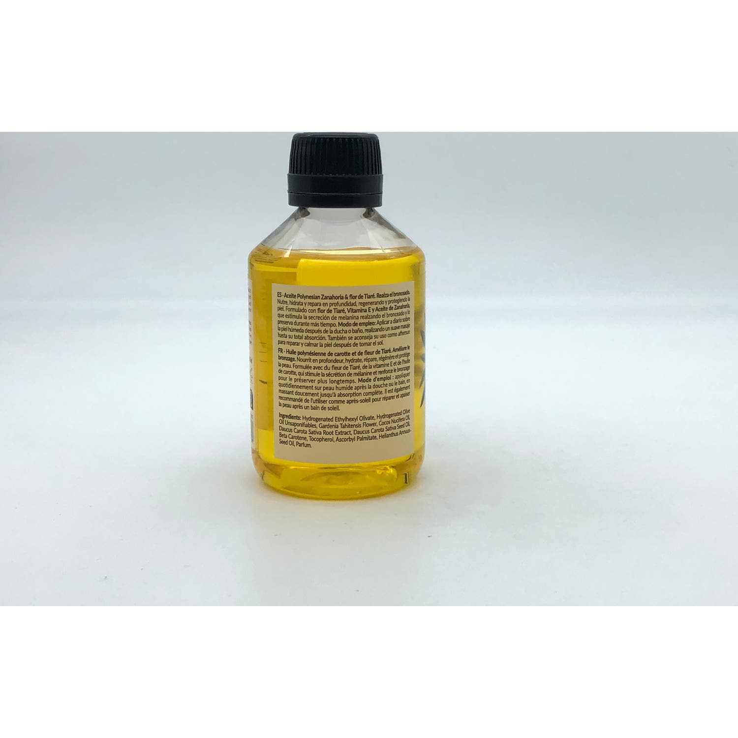El aceite hidratante tiene una textura ligera y está formulado con la combinación de aceite de zanahoria y la flor de gardenia que aporta numerosas propiedades nutritivas e hidratantes para poder reparar y proteger la piel. Gracias a sus componentes podrás realzar el bronceador y preservarlo durante más tiempo.