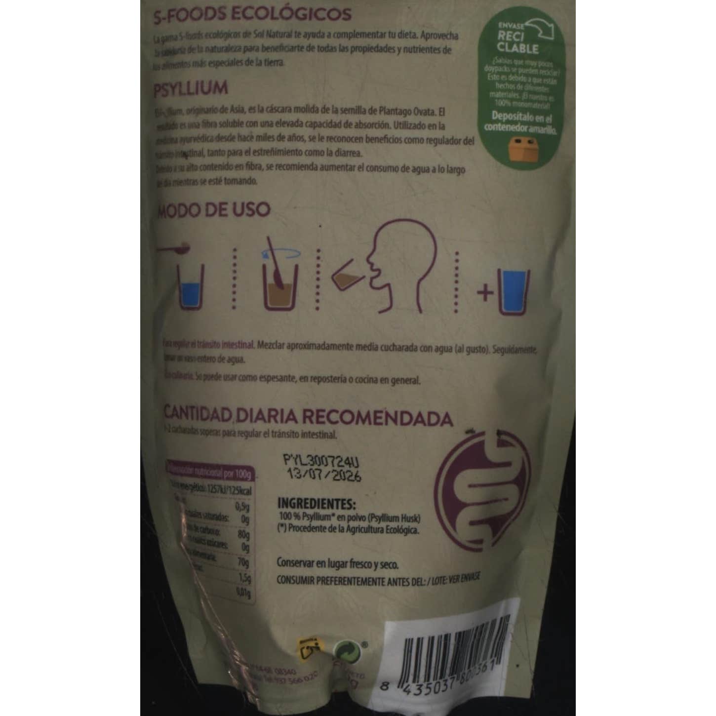 Plantago es originario de Asia, es la cáscara molida de la semilla de Plantago Ovata. Es una fibra soluble con una alta capacidad de absorción. Es usado en la medicina ayurvédica desde hace muchos años, gracias a sus propiedades como regulador intestinal, tanto para el estreñimiento como la diarrea.