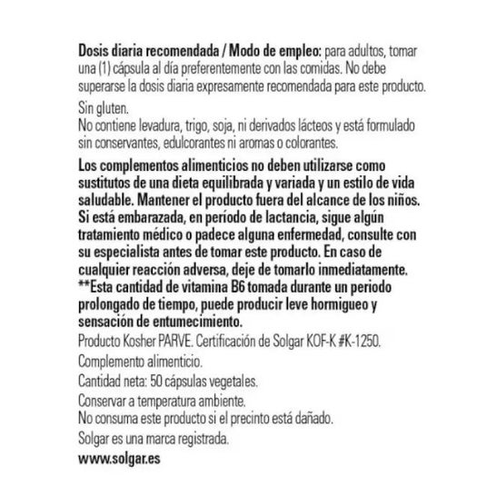 Solgar BCAA Plus 50vcaps es un complemento alimenticio vegano que combina 3 aminoácidos esenciales de cadena ramificada (BCAA), L-leucina, L-isoleucina y L-valina, con vitamina B6.