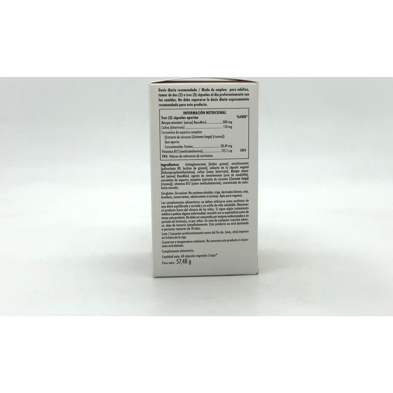 Contiene extracto de Bacopa monnieri (BacoMindTM), vitamina B12 (metilcobalamina), colina y cúrcuma patentada (Full Spectrum Cúrcuma).