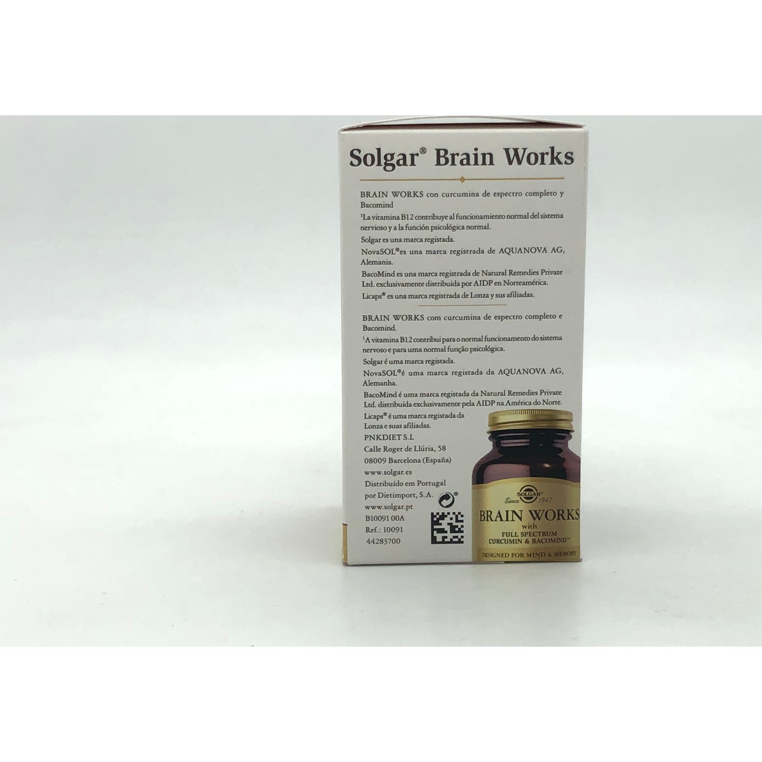 Solgar Brain Works con Full Spectrum Cúrcuma y BacoMind Licaps 60vcaps es un complemento alimenticio en cápsulas vegetales.