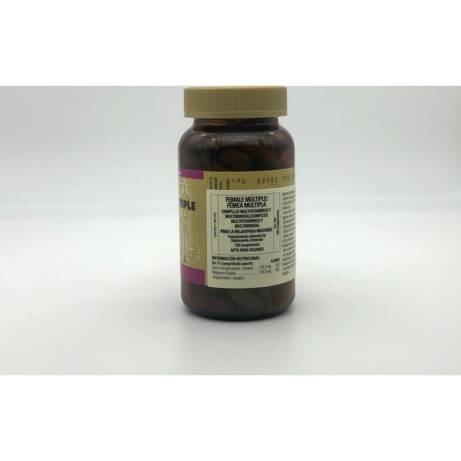 Solgar Female Multiple 120comp es un complemento alimenticio multivitamínico y mineral especialmente diseñado para cubrir las necesidades de la mujer con más de 20 nutrientes diferentes.