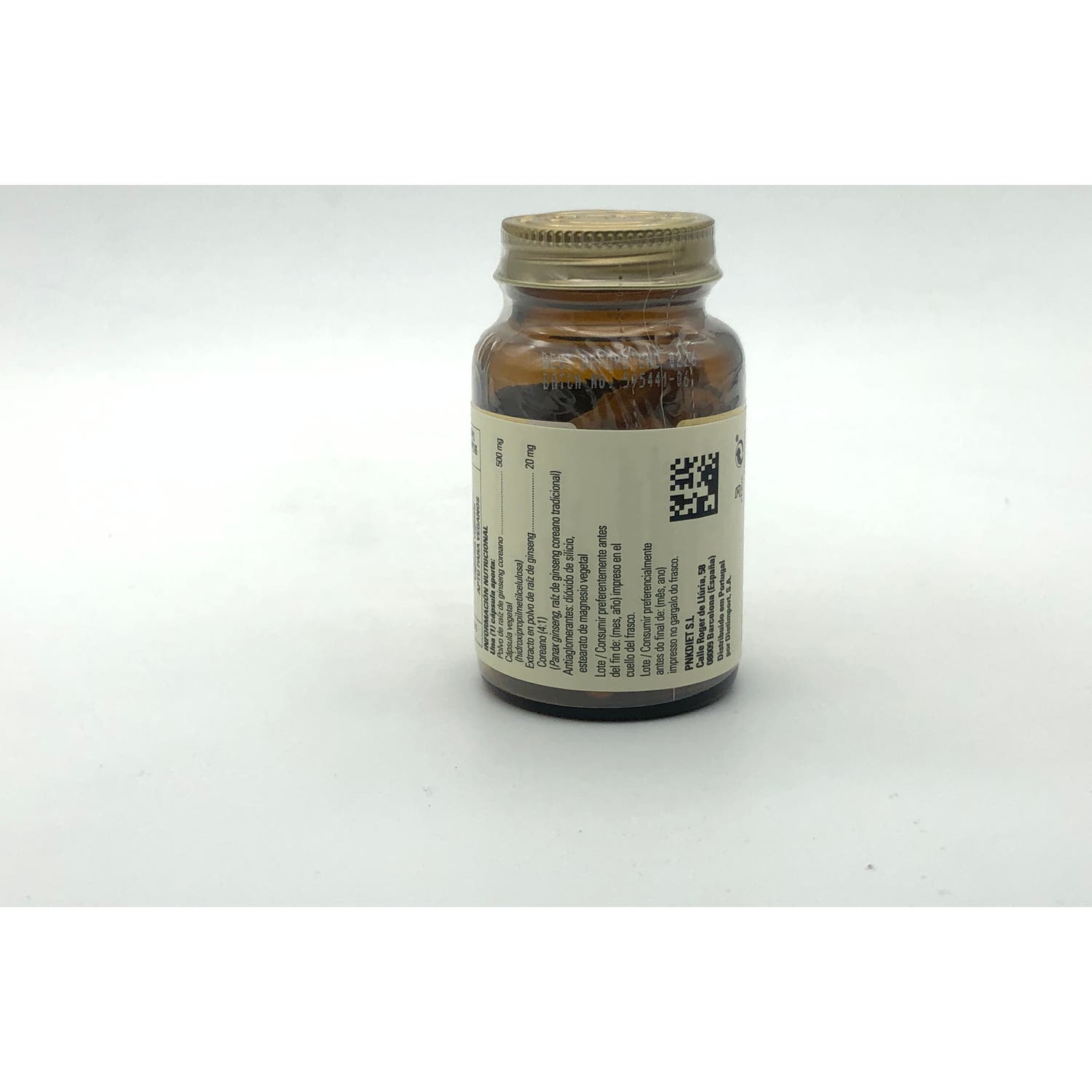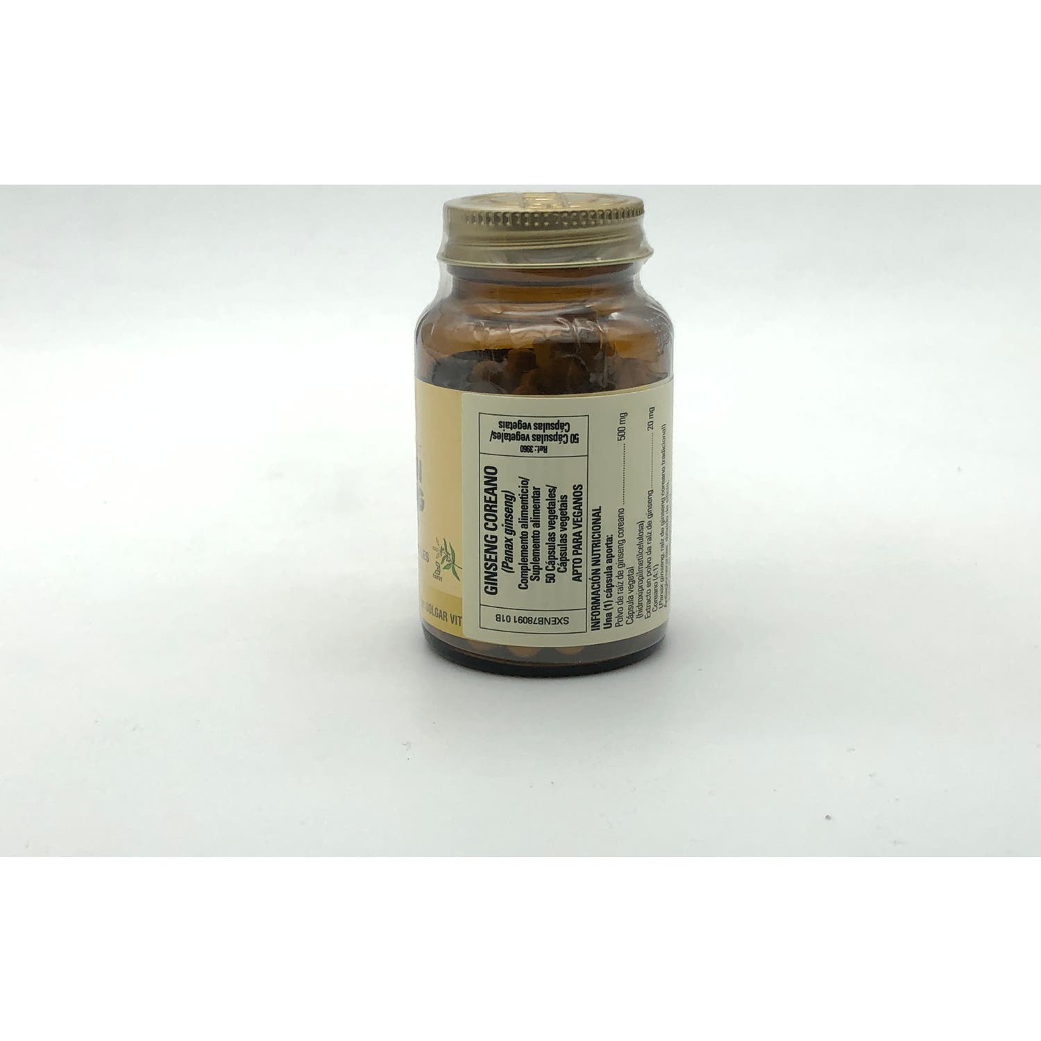 Polvo de raíz de ginseng coreano, Cápsula vegetal (hidroxipropilmetilcelulosa), Extracto en polvo de raíz de ginseng (Panax ginseng); Antiaglomerantes: dióxido de silicio, estearato de magnesio vegetal.