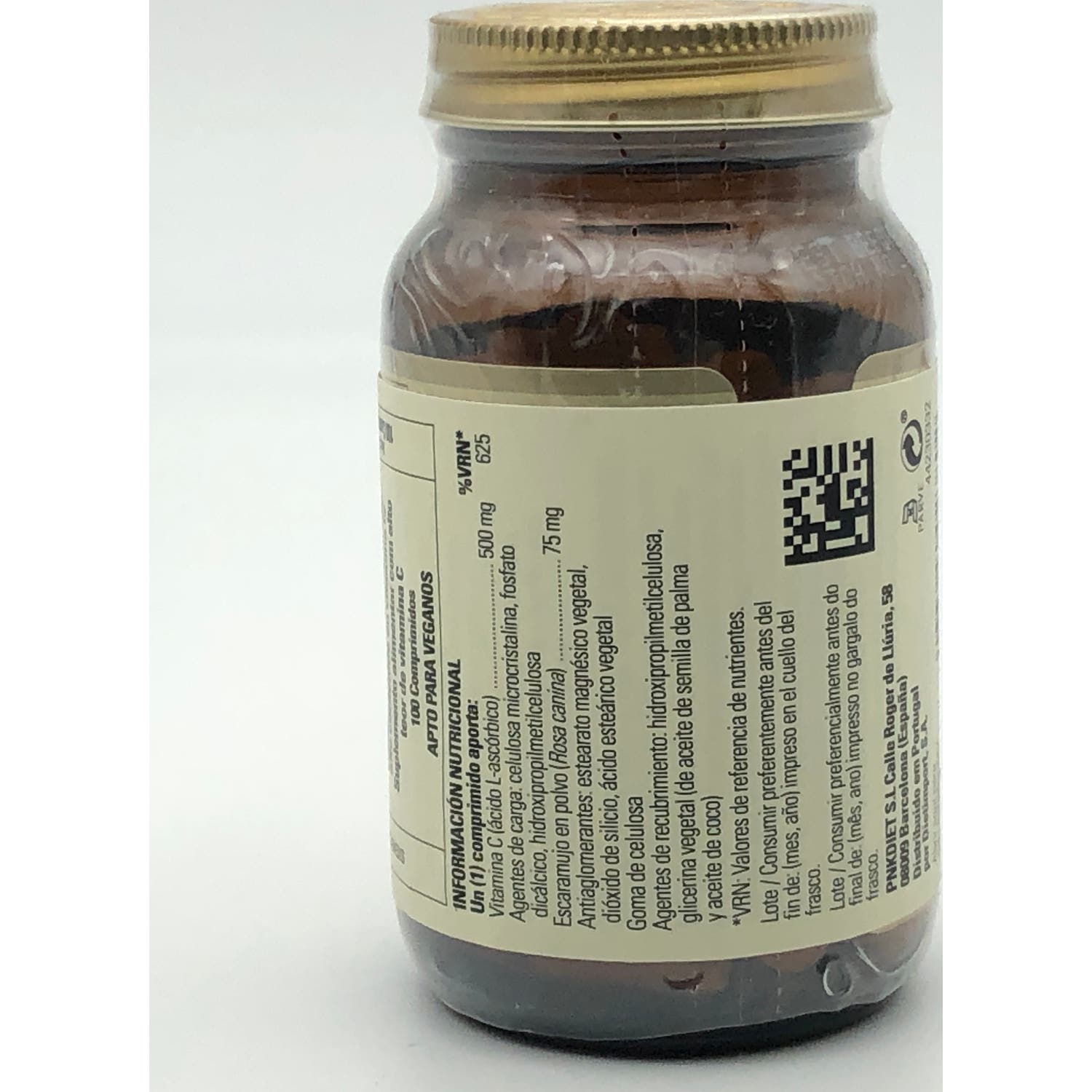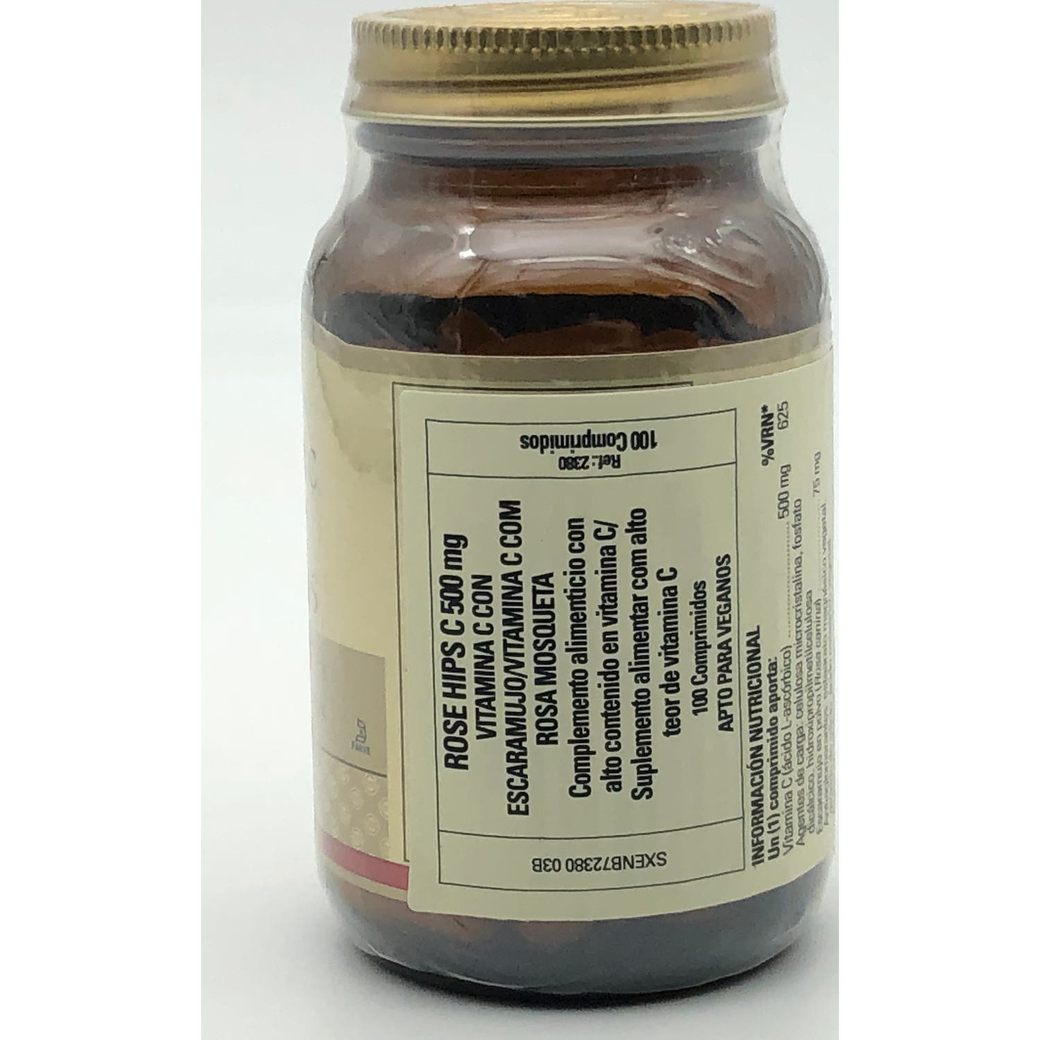 Solgar Vitamina C 500mg con Escaramujo 100comp es un complemento que aporta 500 mg de vitamina C por comprimido, además de uno de sus complementos sinérgicos, el escaramujo.
