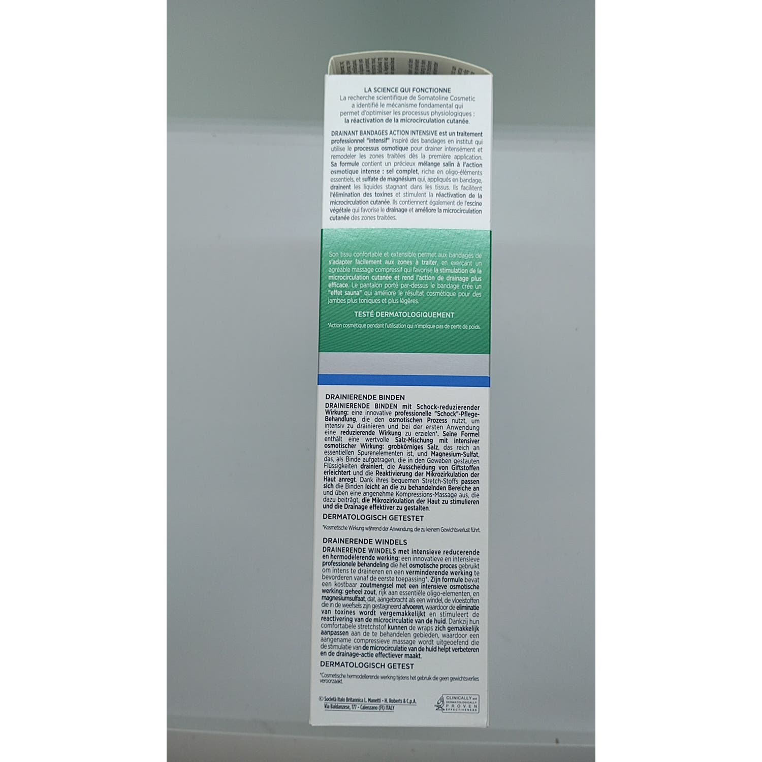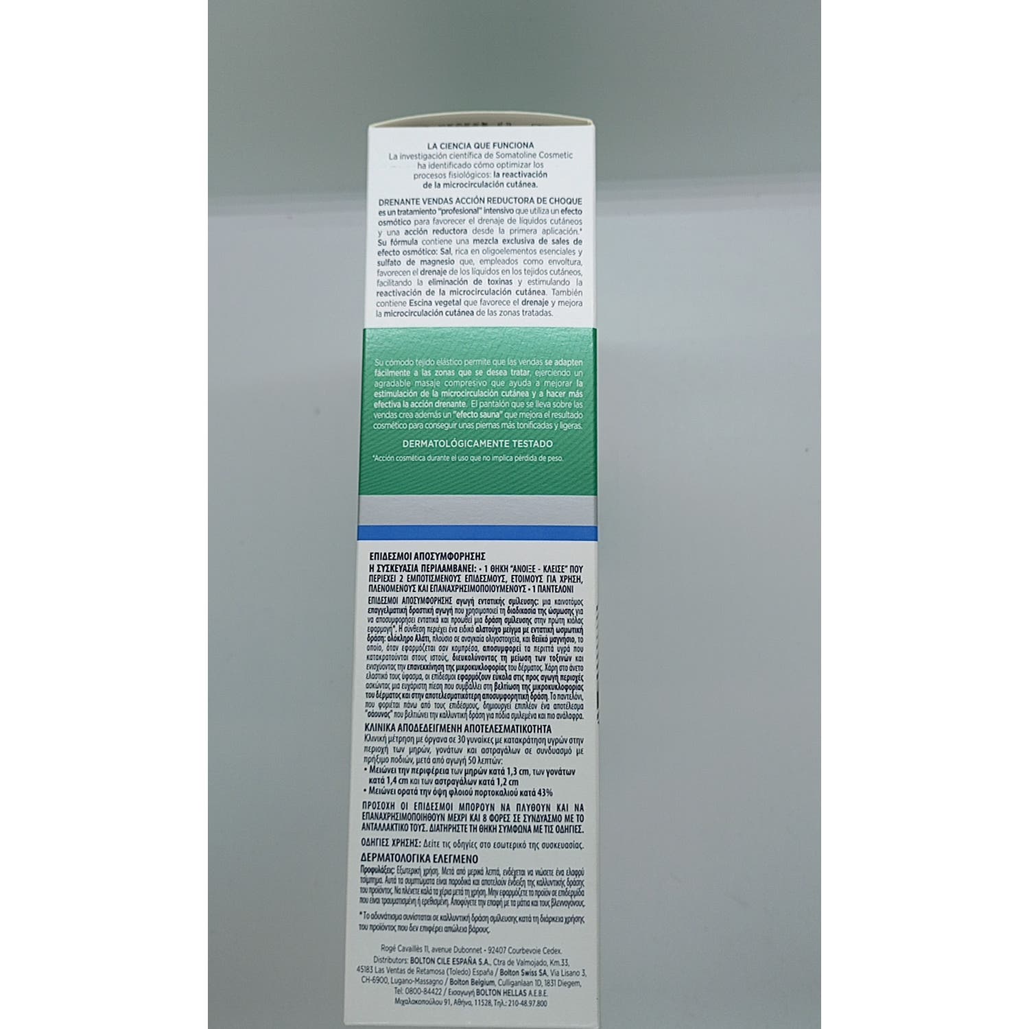 Somatoline Cosmetic Vendas Drenantes 1ud es un tratamiento de choque de acción reductora compuesto por 2 vendas reutilizables, una para cada pierna, que aprovechan el efecto osmótico para favorecer el drenaje de líquidos cutáneos desde la primera aplicación.
