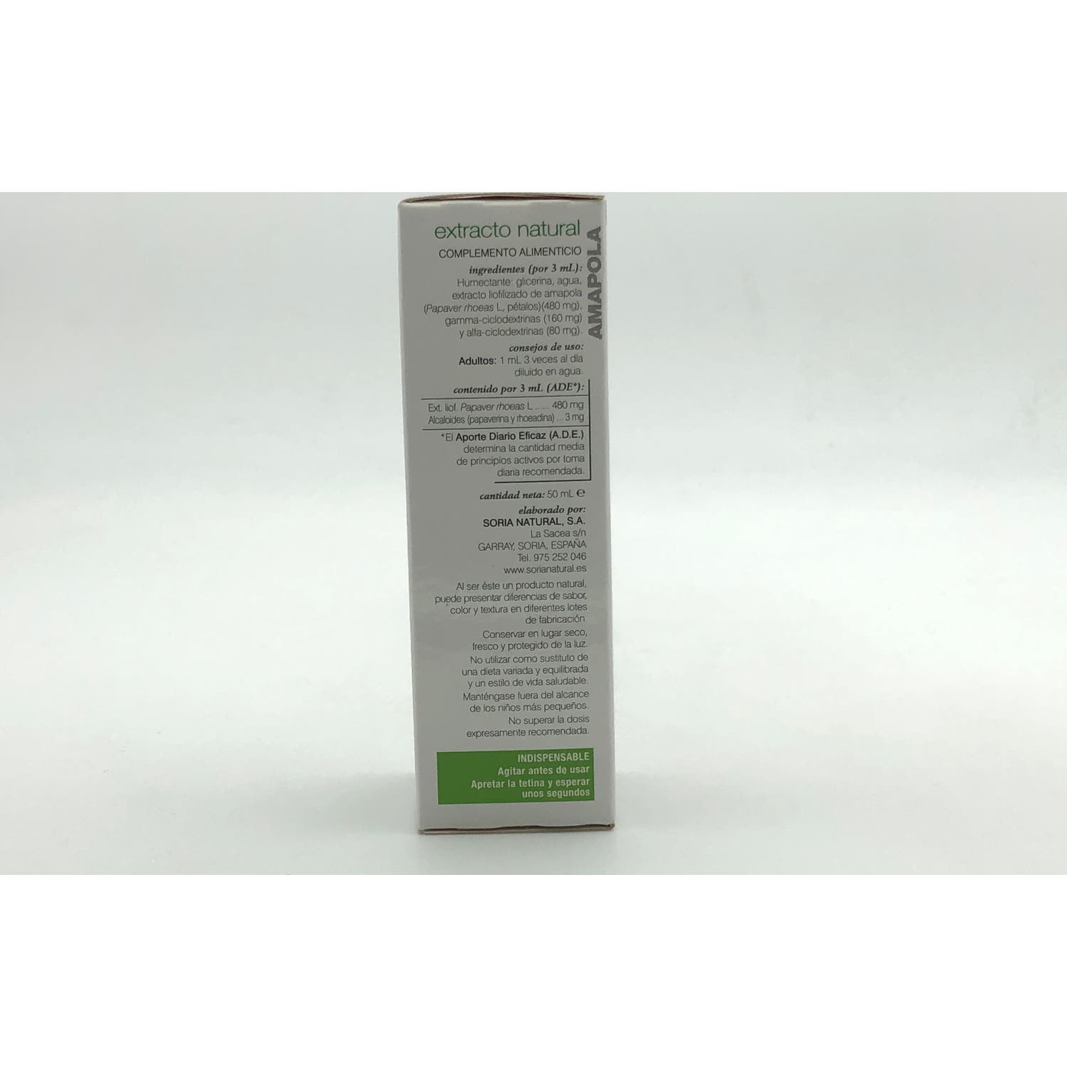 Soria Natural Amapola Extracto 50ml es un complemento alimenticio de extracto de amapola que contribuye a relajar el sistema nervioso central y a calmar la mucosa respiratoria.