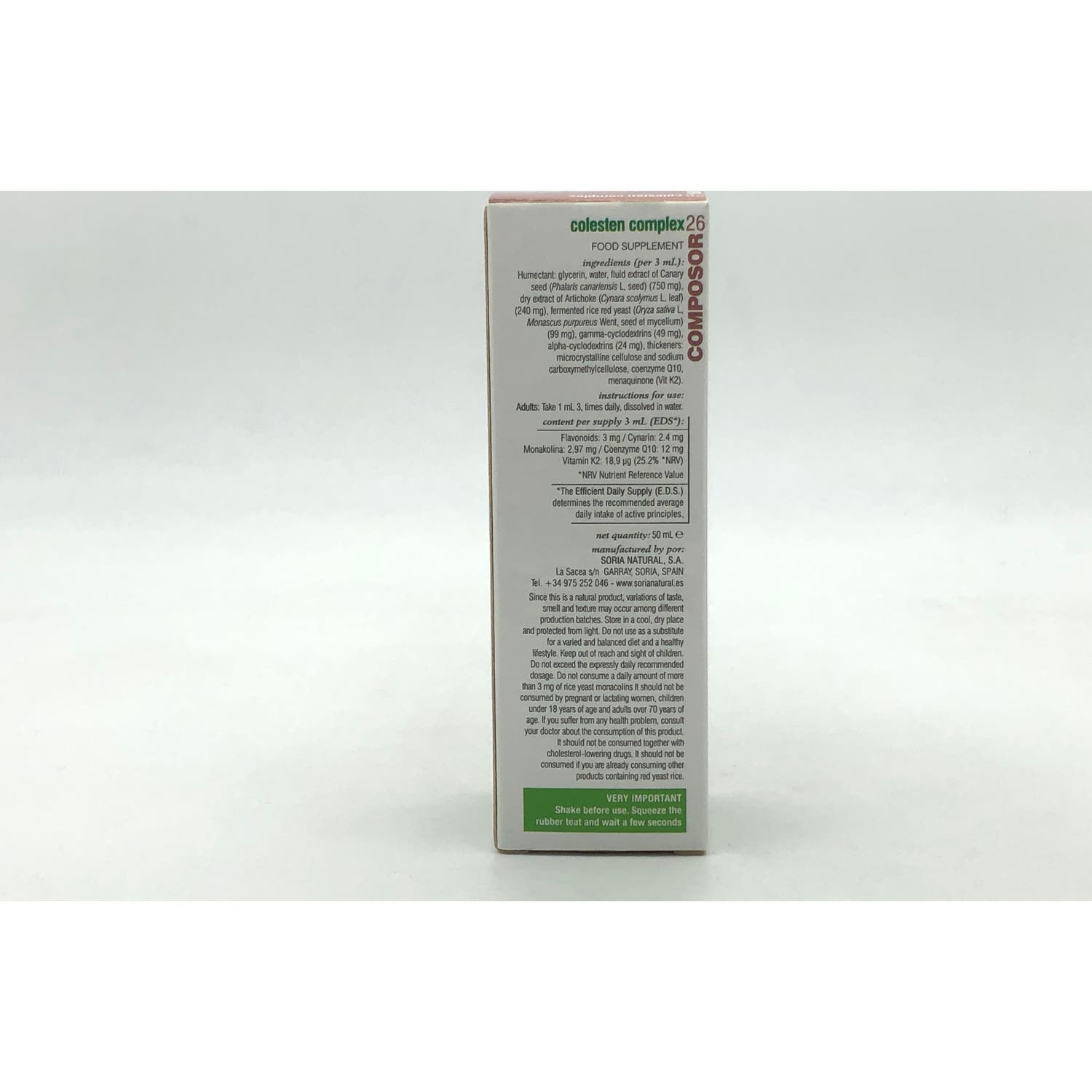 Soria Natural Composor 26 - Colesten Complex 50ml es un complemento alimenticio que actúa como coadyuvante para normalizar los niveles de colesterol.