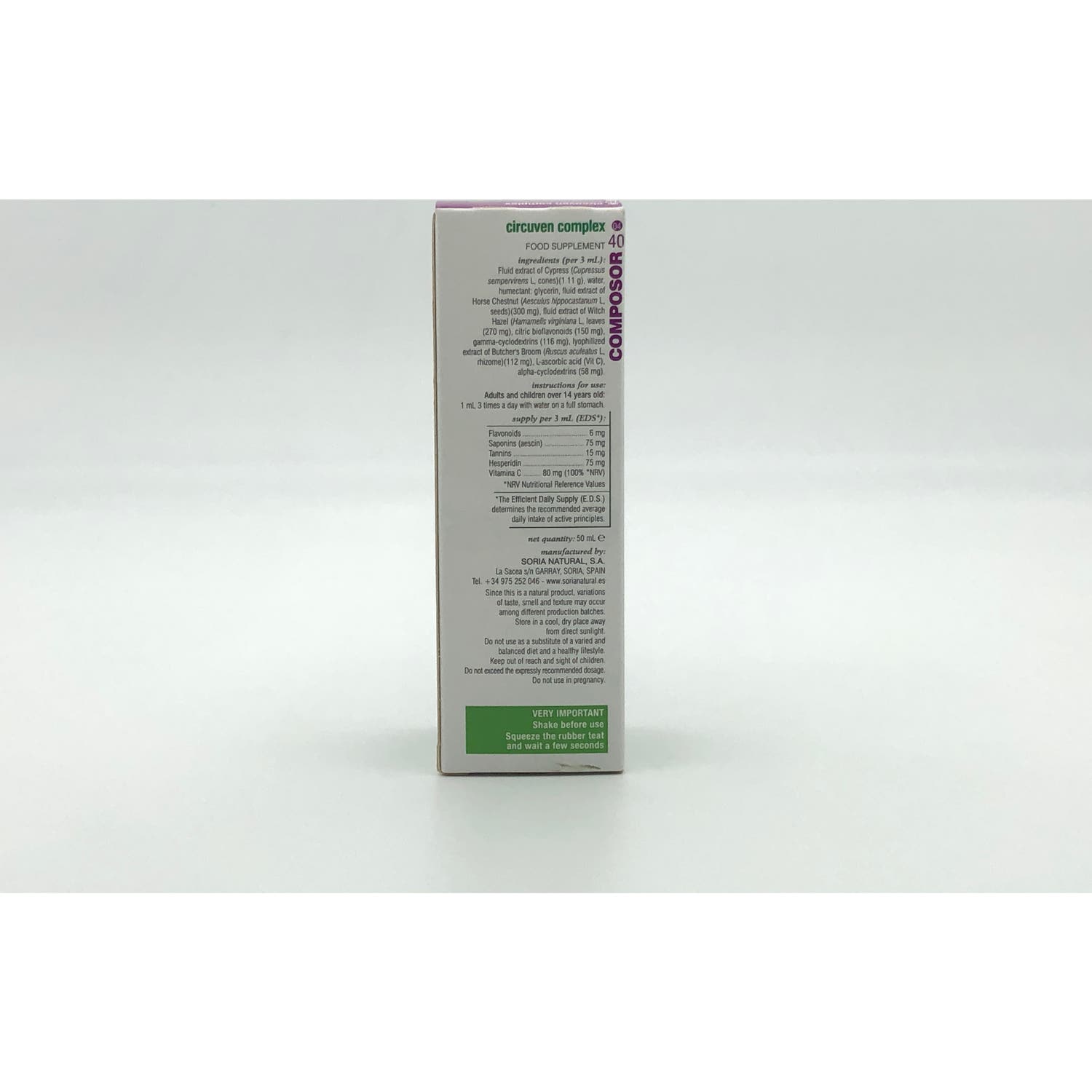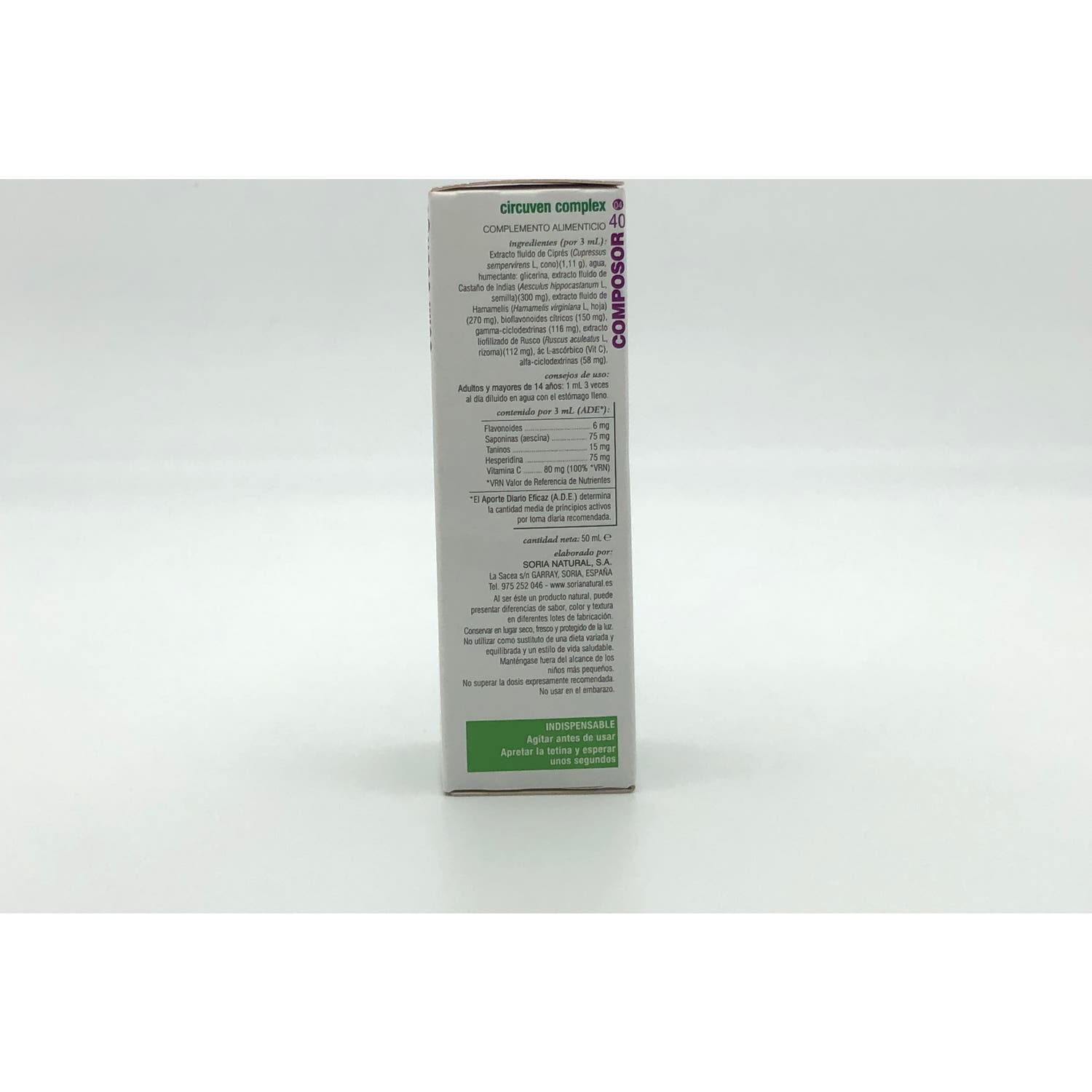 Soria Natural Composor 40 - Circuven Complex 50ml es un producto que ayuda a mejorar la circulación sanguínea y aliviar los síntomas de problemas venosos como las varices. Elaborado con ingredientes naturales que actúan de forma sinérgica en el sistema circulatorio.