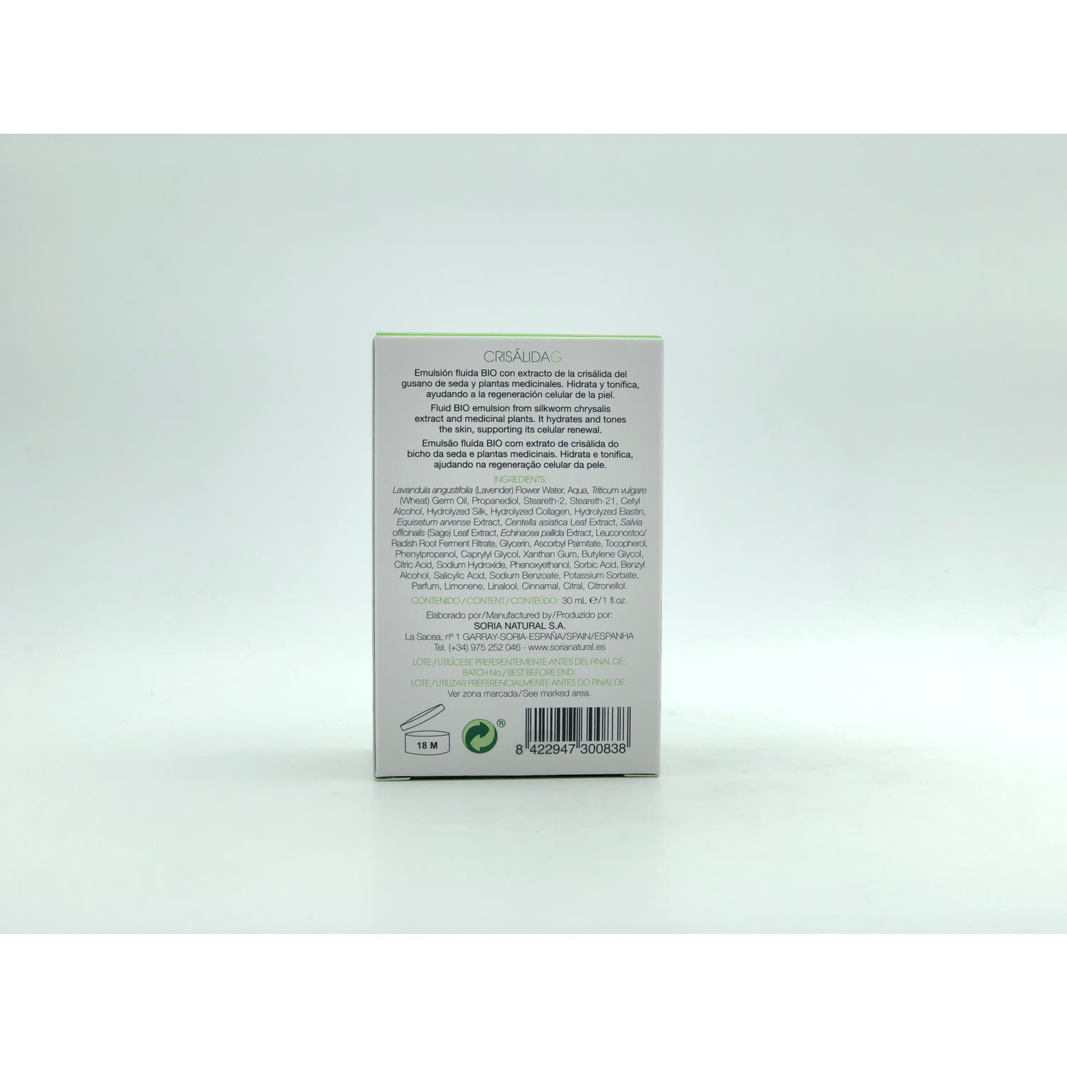 Soria Natural Crisálida Emulsión Tónico Renovadora 30ml es una emulsión fluida formulada con: