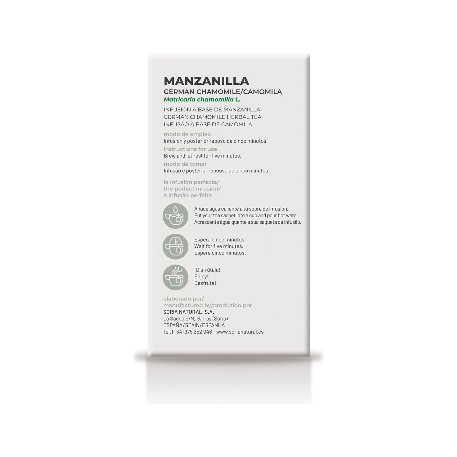 Soria Natural Manzanilla Infusión 20 filtros se toma tras la comida y se puede repetir en la merienda si los síntomas persisten. La manzanilla de Soria Natural es una alternativa sana para ayudar al estómago a una mejor digestión y sentirse menos pesados tras la comida.