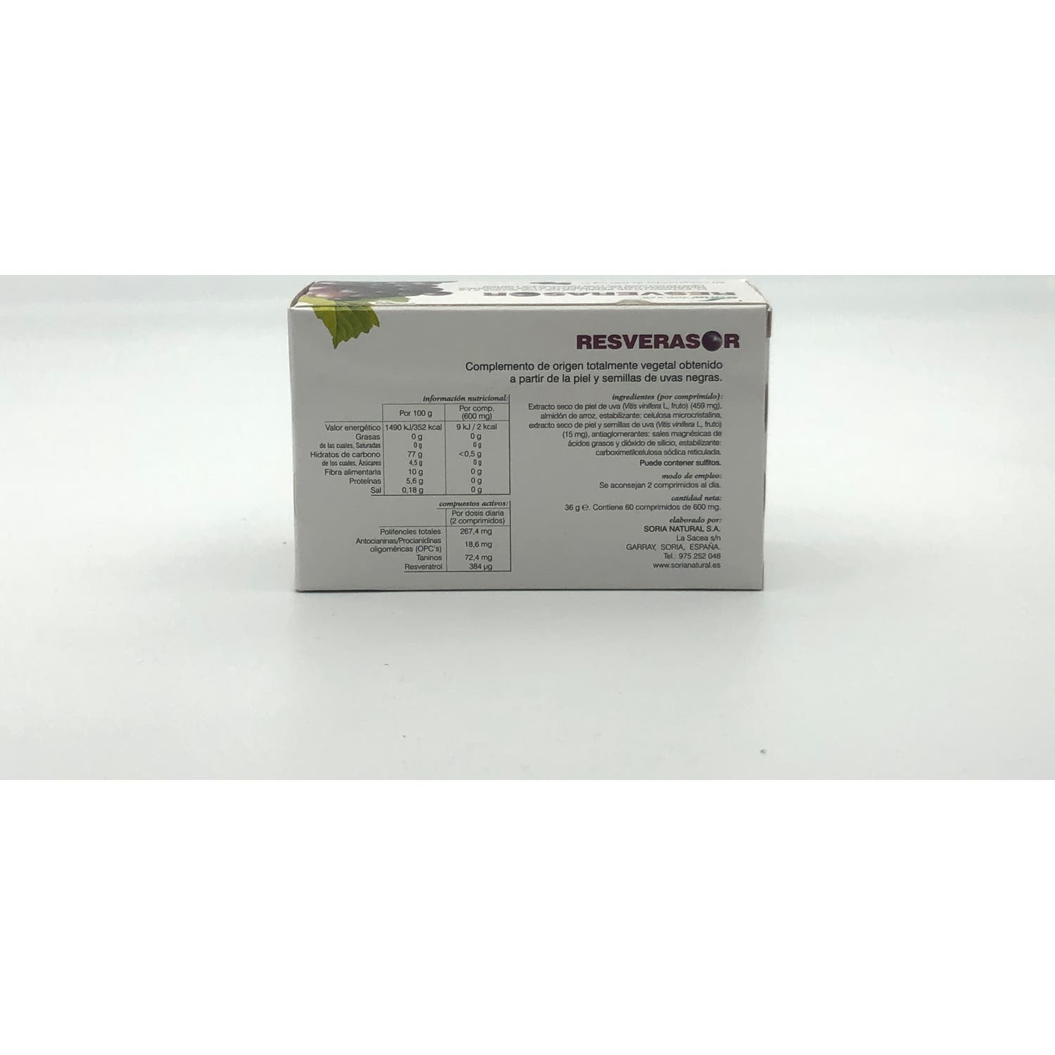 Soria Natural te presenta Resverasor, unos comprimidos realizados a base de semillas y piel de uvas negras procedentes de cultivo ecológico. Esta fruta te ofrece una acción antioxidante y antienvejecimiento.