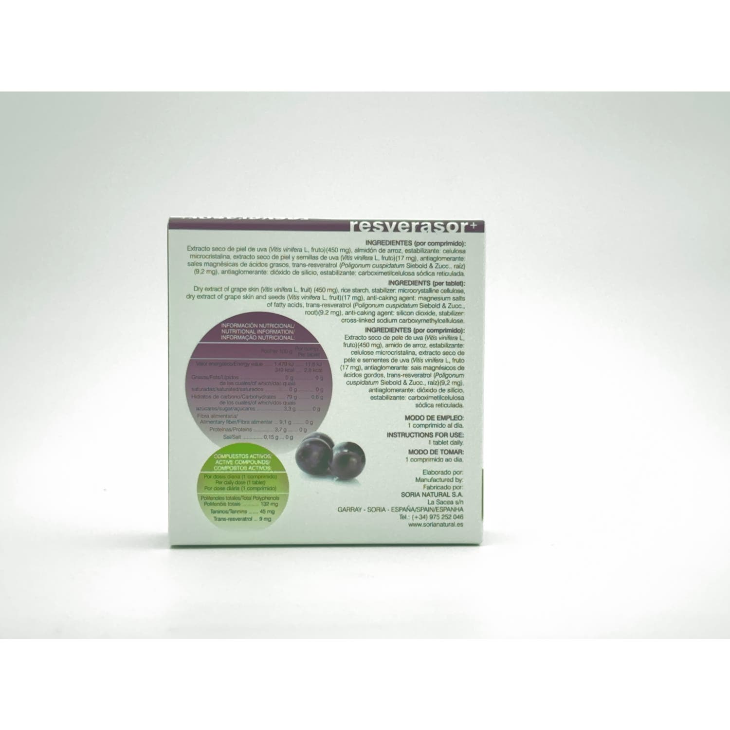 Soria Natural te presenta Resverasor Plus, unos comprimidos realizados a base de semillas y piel de uvas negras procedentes de cultivo ecológico. Esta fruta te ofrece una acción antioxidante y antienvejecimiento.