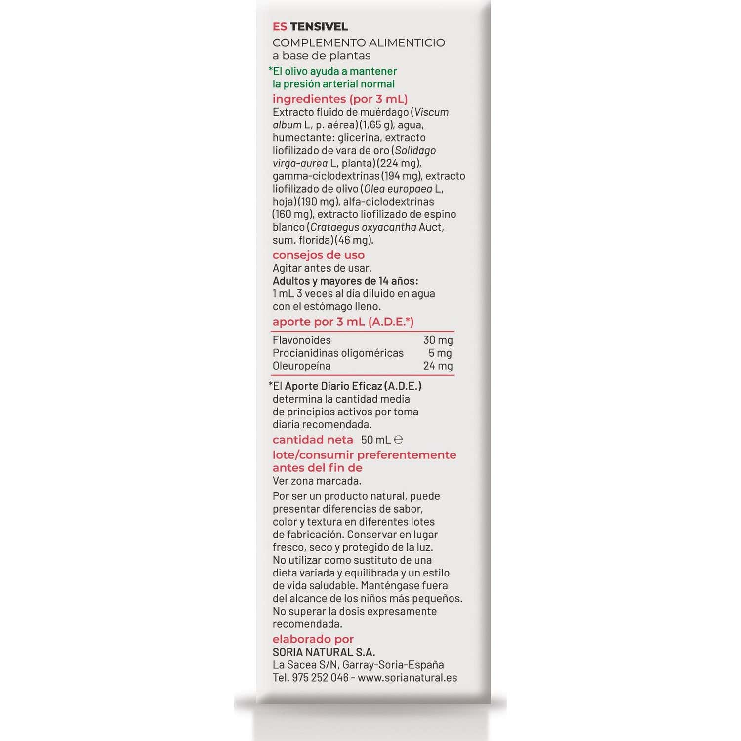 Bote de 50 ml. Los complementos alimenticios no deben utilizarse como sustitutos de una dieta variada y equilibrada. No superar la dosis diaria expresamente recomendada. Mantener fuera del alcance de los niños más pequeños.