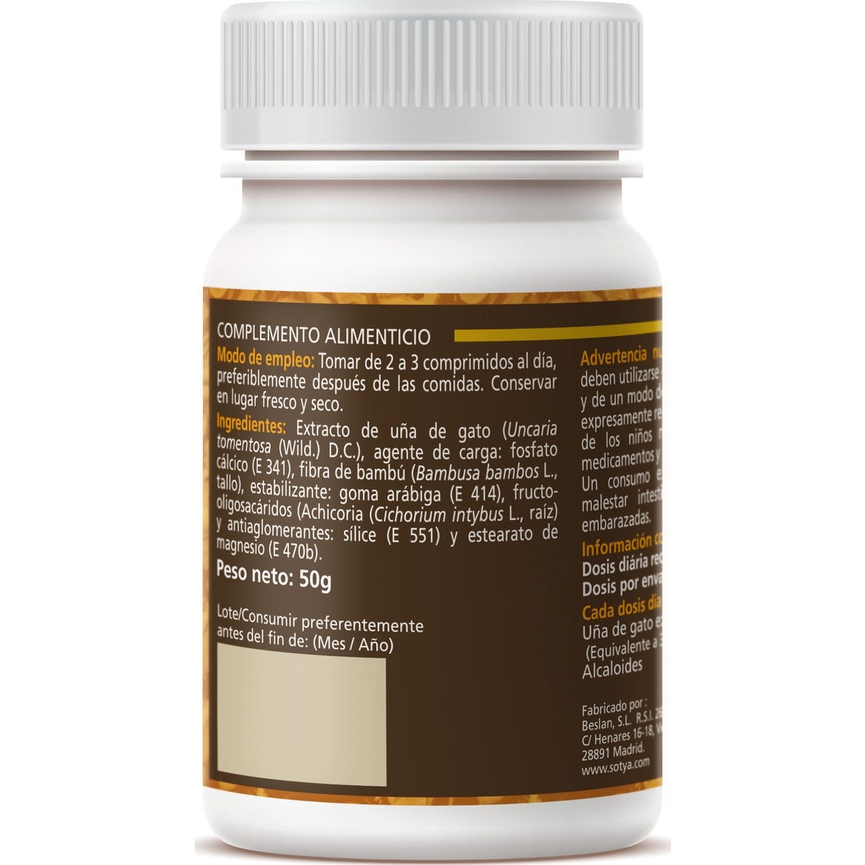Sotya Uña de Gato 500mg 100comp es un complemento que da soporte a mejorar la salud del organismo.