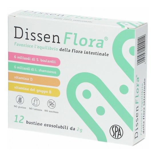 El SPA Dissen Flora 12 Sobres es un suplemento alimenticio que contiene: