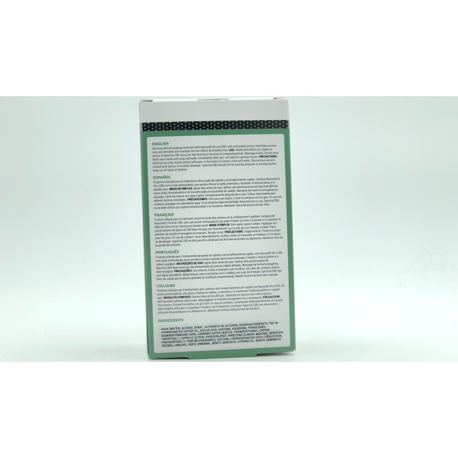 Spectral CBD es un tratamiento capilar cosmético con propiedades antioxidantes y de soporte a la caída capilar. Su composición es una mezcla sinérgica de nanoxidil 5% y cannabidiol (CBD) del cáñamo. Contribuye a nutrir el folículo piloso y apoya así la etapa de crecimiento del cabello. Se puede utilizar como coadyuvante a otros tratamientos para la caída capilar. El uso de Spectral está indicado para hombres y mujeres indistintamente. Se puede usar por la noche en un período de tres meses.