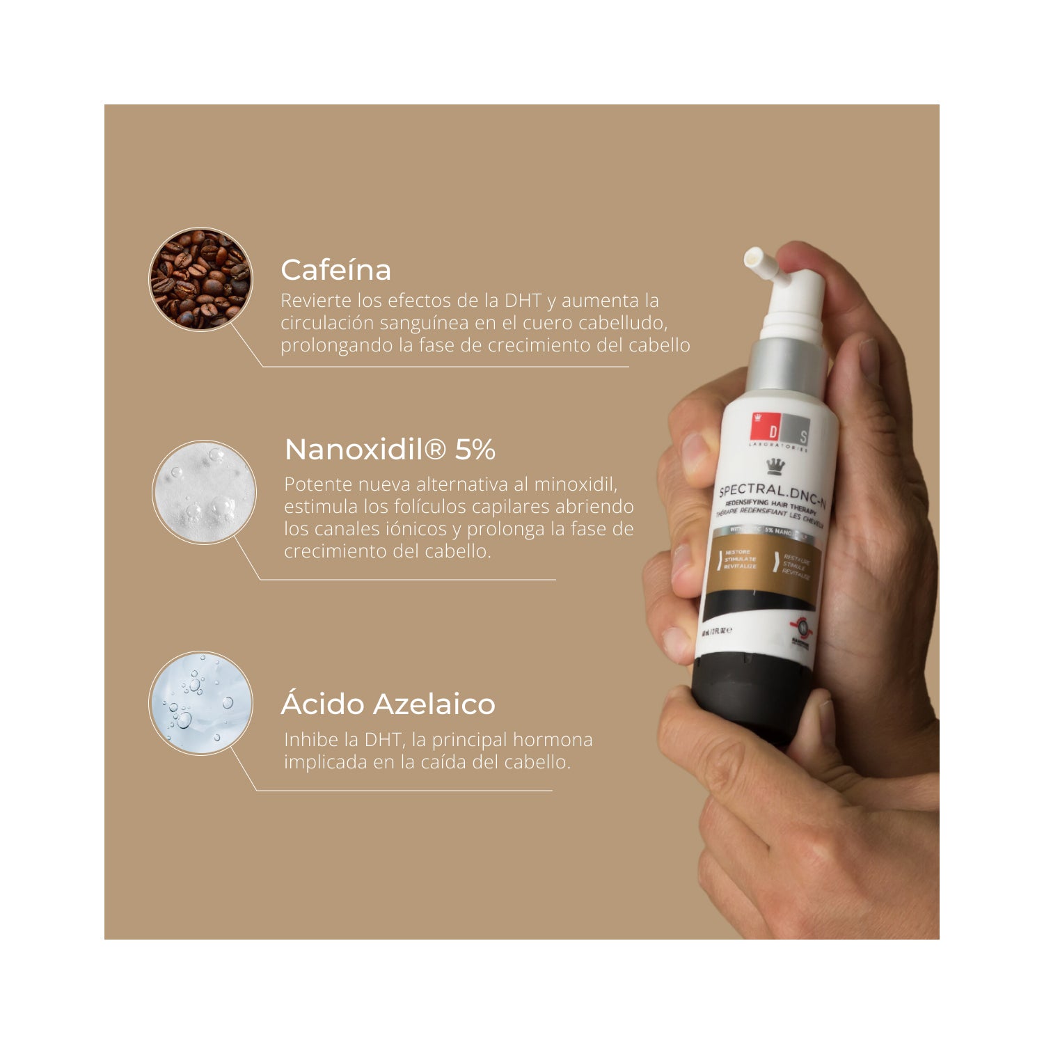 Spectral Pack Dnc-N Tratamiento Anticaída 3x60ml es un tratamiento capilar en ampollas, diseñado para estimular el folículo piloso. Elaborado con una fórmula nueva y patentada con Nanoxidil® al 5%, un activo que contribuye a prevenir la caída del cabello, mientras lo ayuda a regenerar y engrosar.