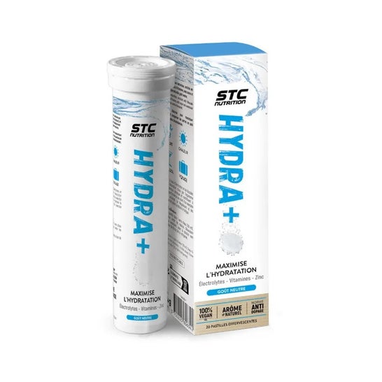 Stc Nutrition Hydra+ Neutre 20comp es un producto diseñado para enriquecer el agua con minerales, electrolitos, zinc y vitaminas. Se presenta en forma de pastillas efervescentes que ofrecen un sabor agradable, disponible en aromas naturales de frutas rojas o limón.