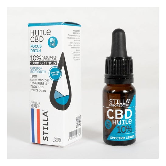 Stilla Oil Cbd Focus Daily Bio 10% 100mg Full Spectrum 10ml es un aceite de CBD que ayuda a nutrir intensamente y aportar bienestar a la piel. Elaborado a base de CBD de extracción natural de espectro completo. Indicado para nutrir la piel y realizar masajes localizados en zonas tensionadas. Uso externo y cosmético. Diseñado y fabricado en Francia.