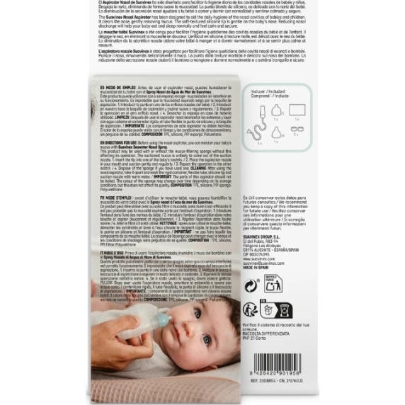 Suavinex Aspirador Nasal +0 Meses es un dispositivo diseñado para facilitar la limpieza diaria de las fosas nasales. Este aspirador es especialmente útil en el cuidado de los más pequeños, ya que ayuda a prevenir la obstrucción nasal en niños que aún no han aprendido a sonarse por sí mismos.