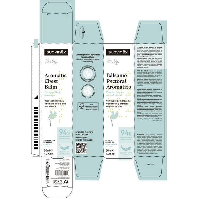 Suavinex Bálsamo Pectoral Aromático 50 ml es un producto diseñado para proporcionar un masaje reconfortante que contribuye al bienestar del bebé. Este bálsamo se compone en un 95% de ingredientes de origen natural, lo que lo hace ideal para pieles sensibles y apto desde el primer día de vida.