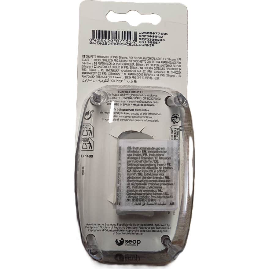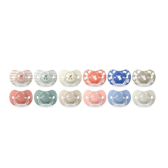 Chupetes de silicona indicados para el paladar de los bebés de 6 a 18 meses, su forma anatómica imita el pezón de la madre durante la lactancia.