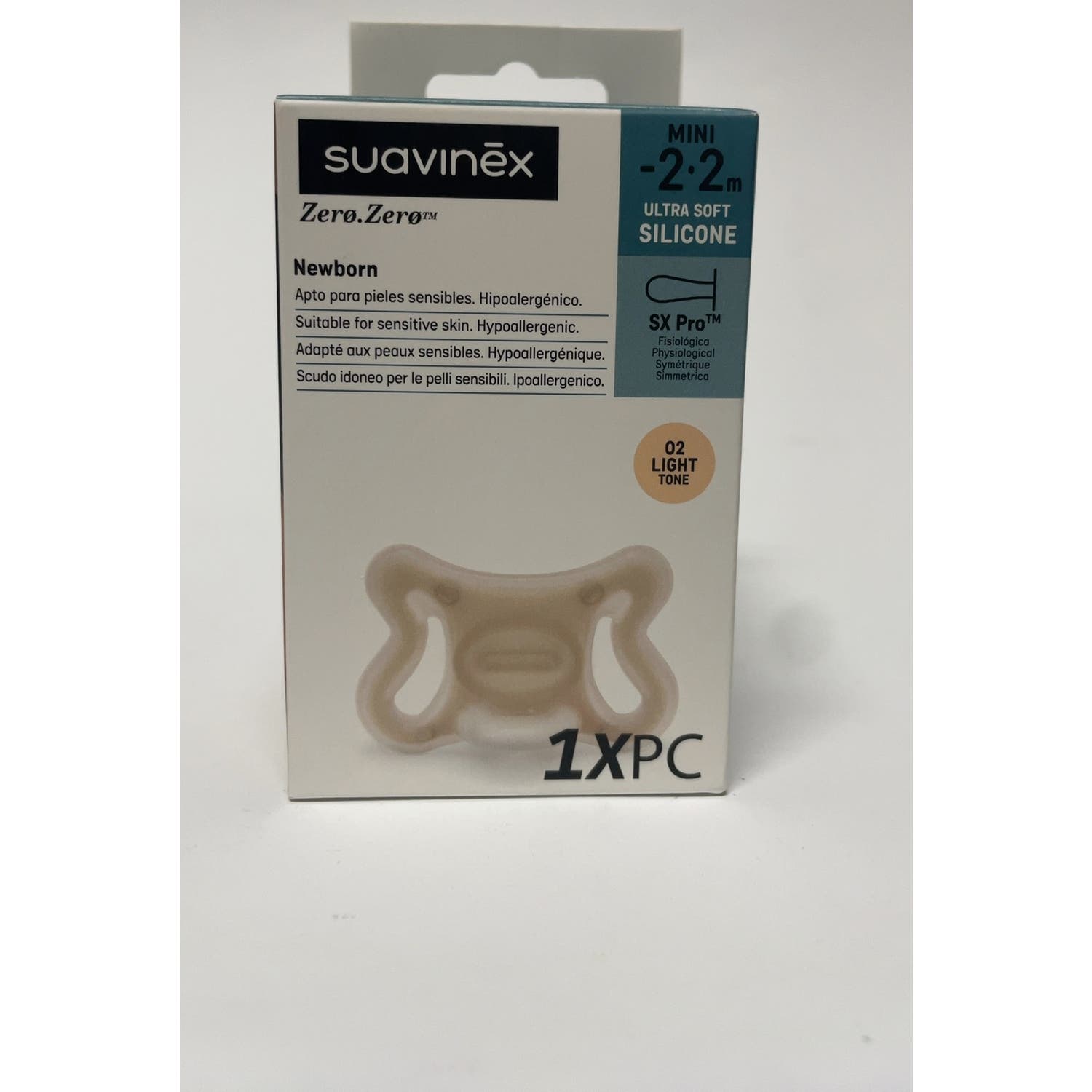 Chupete con tetina fisiológica, diseñado especialmente para respetar el desarrollo bucodental del bebé. Apto para pieles sensibles, está fabricado en silicona 100% de grado médico, que aporta un tacto muy agradable para el recién nacido.
