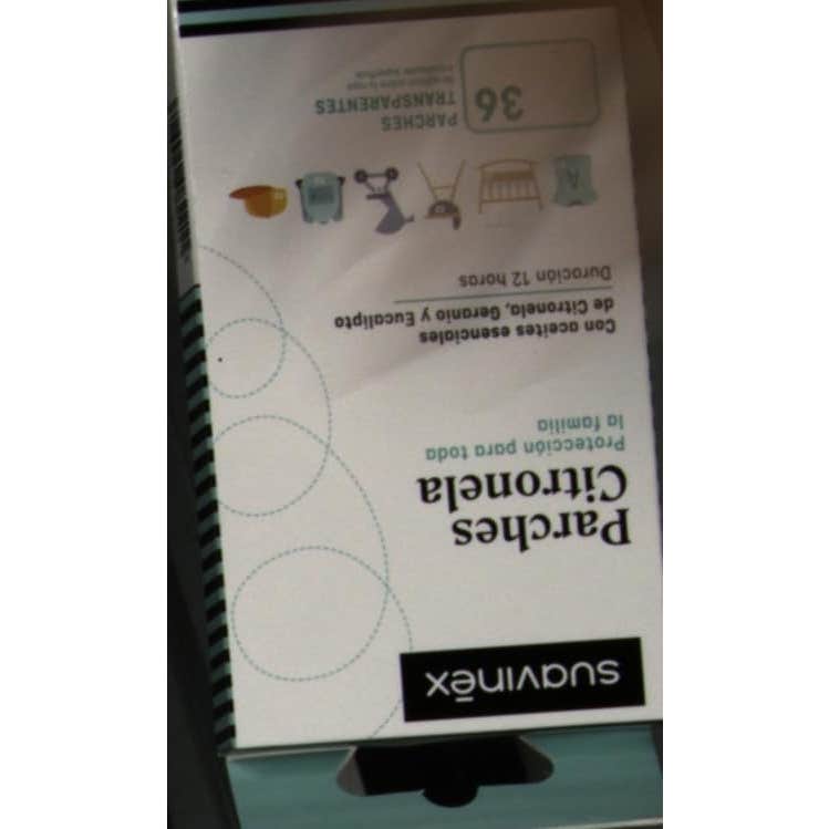 Suavinex Parches Citronela Transparentes 36uds son unos parches de citronela indicados para bebés y niños que ayudan a prevenir las picaduras de insectos y mosquitos. Está enriquecido con aceites esenciales de citronela, geranio y eucalipto que contribuyen a ahuyentar a los mosquitos. Contiene 36 unidades.