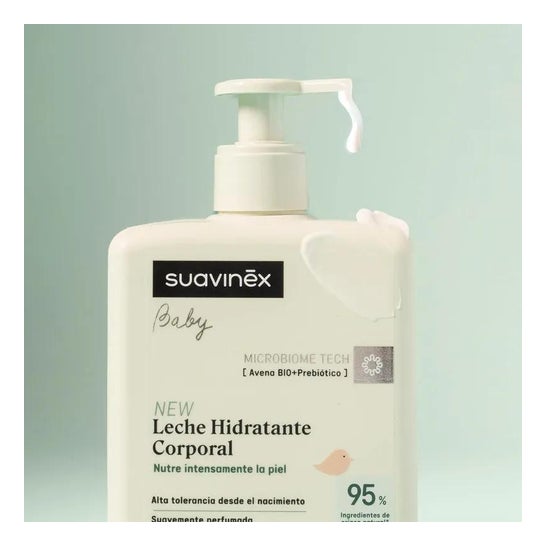 Suavinex® loción hidratante suaviza e hidrata la piel del bebé con especial eficacia gracias a su combinación de aceites de origen vegetal. La piel del bebé estará más nutrida y protegida de las agresiones externas.