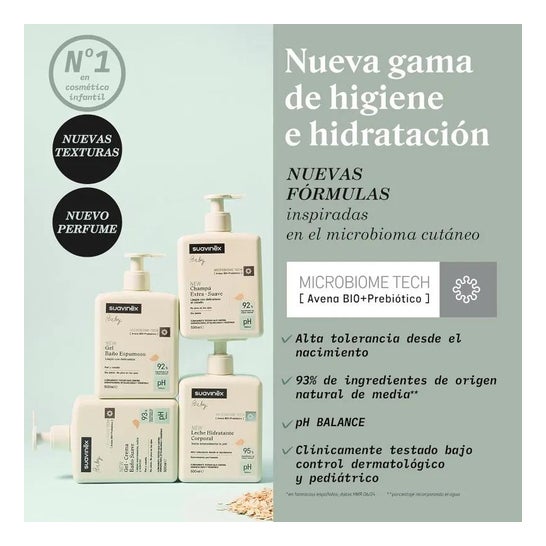 Además de la máxima hidratación, Suavinex loción hidratante calma la piel de tu bebé gracias al extracto de melisa.