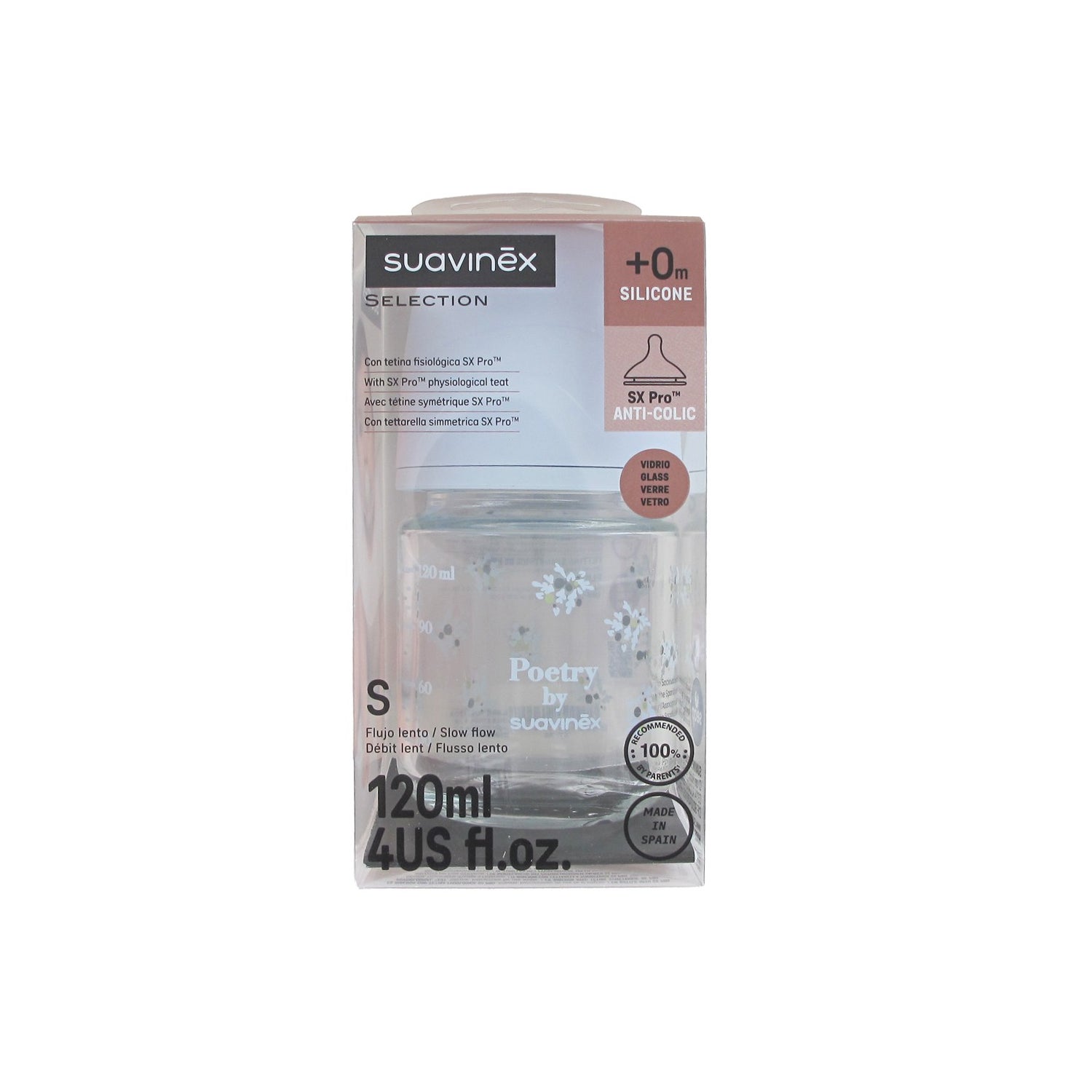 Suavinex Selection Biberon Vidrio Poetry SX Pro Flujo S 120 ml